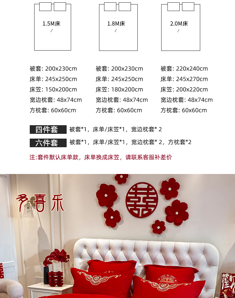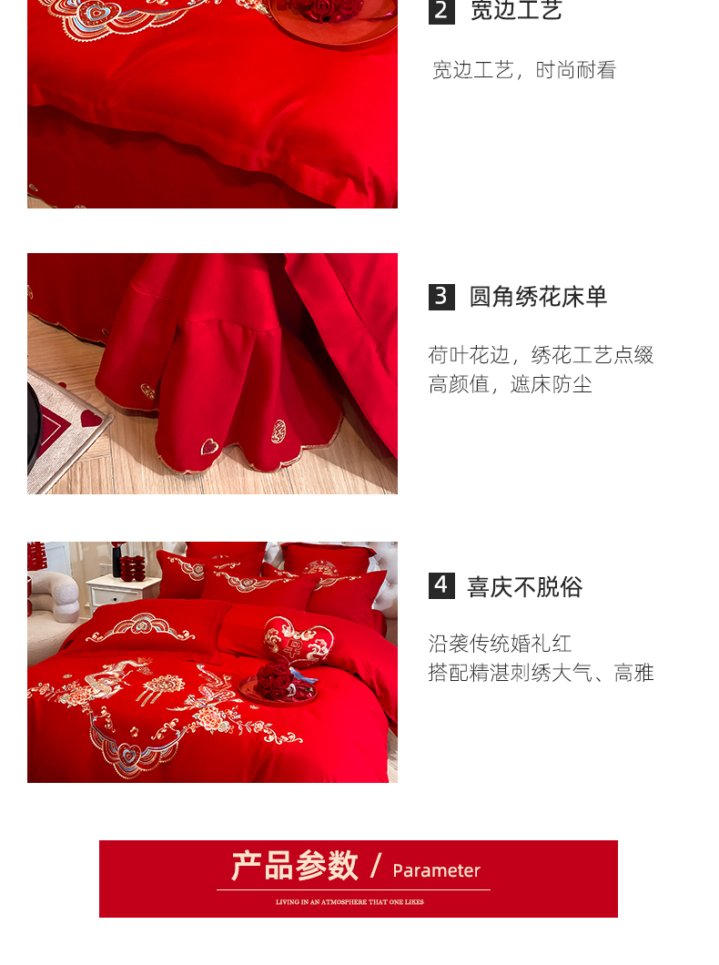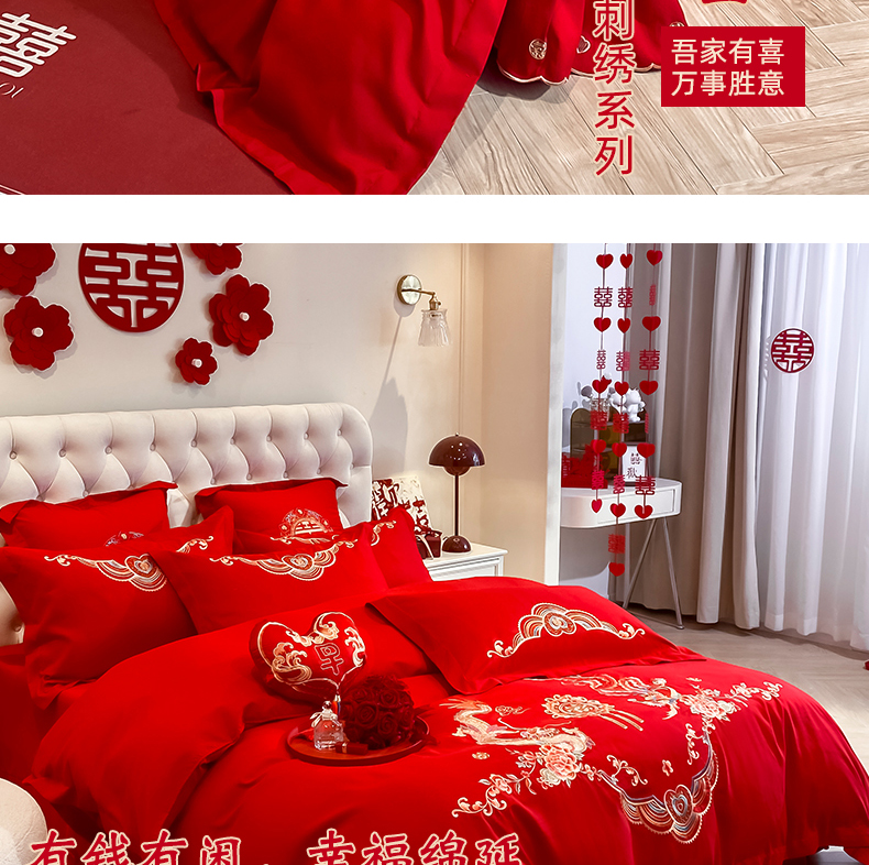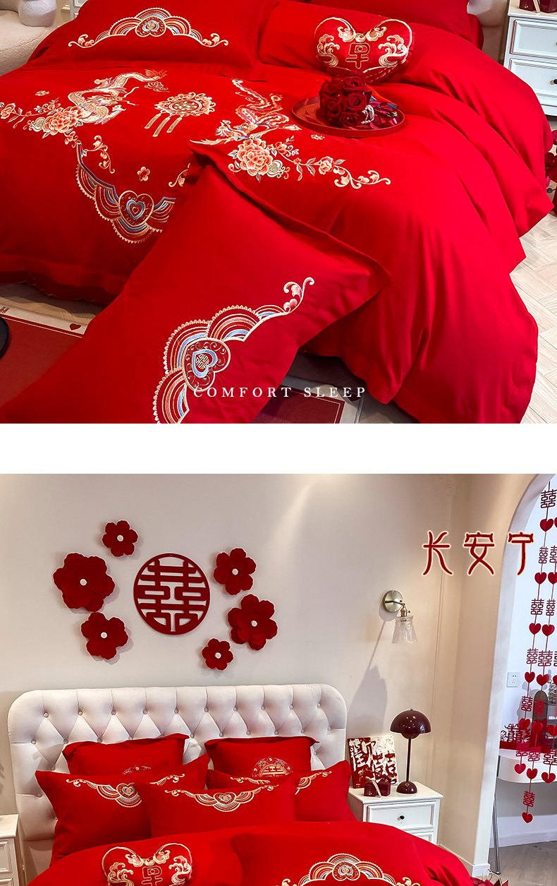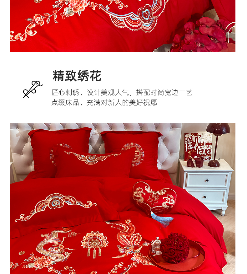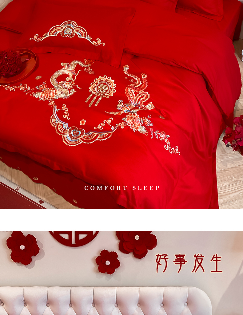 当前位置: 91家纺网 > 商品网购 > 床品套件 > 四件套 > 婚庆四件套 > 玉雅家纺 2025新款玉雅时尚磨毛刺绣床单款系列婚庆套件 床单绣花款-喜乐龙凤