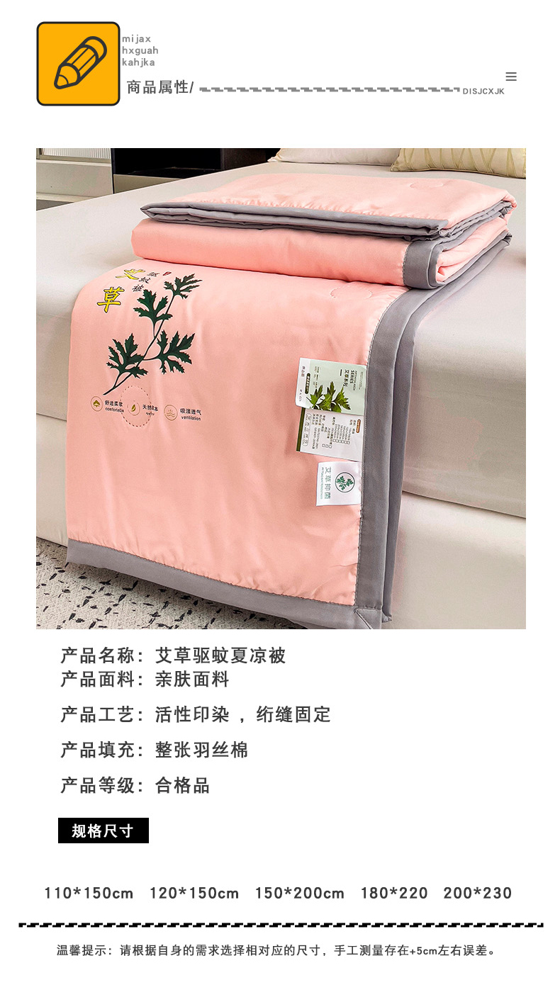 商品名称:鹿小帅纺织品 2024新款艾草驱蚊夏凉被 暖心玉