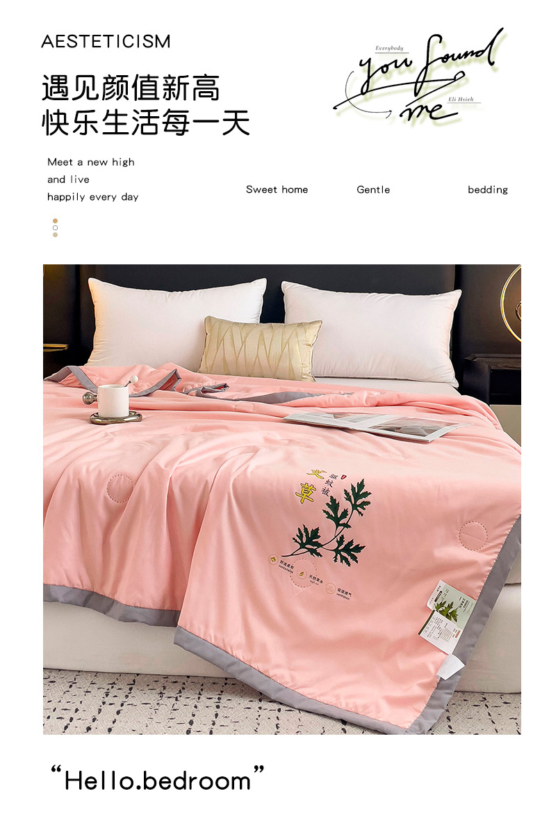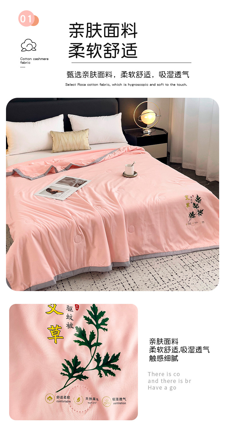 (总)鹿小帅纺织品 2024新款艾草驱蚊夏凉被,暖心玉,天际蓝,高级灰