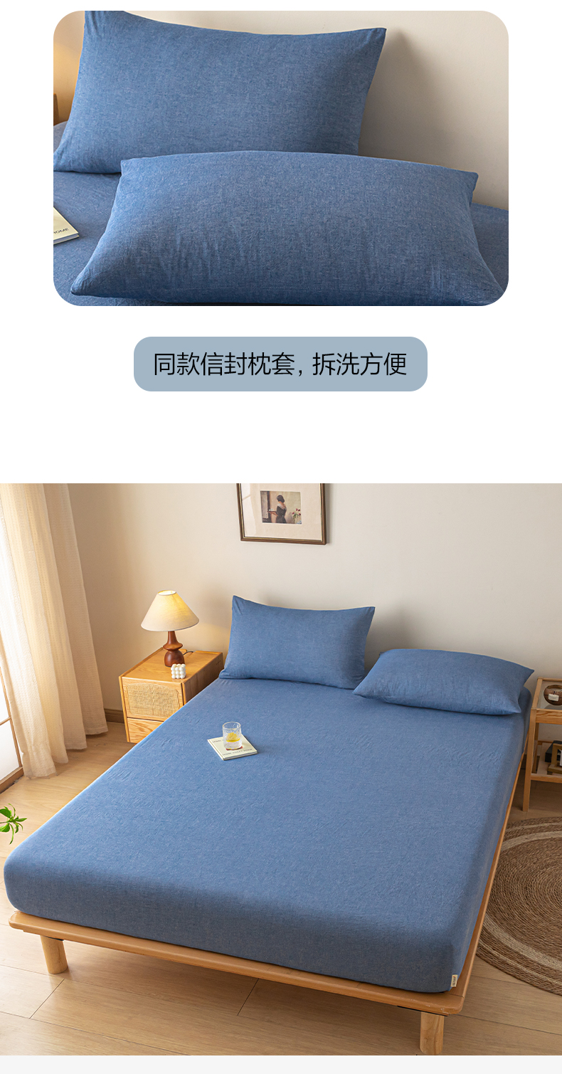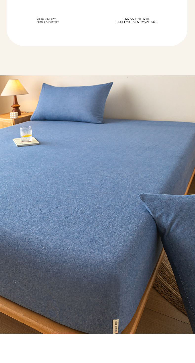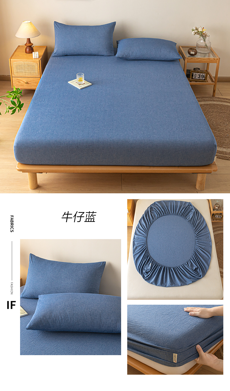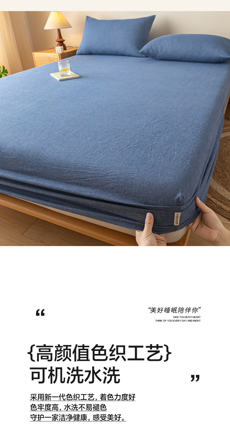 • 91家纺网 家纺一手货源 找家纺 卡伦家纺 2025全棉色织水洗棉单层床笠席梦思保护套 牛仔蓝