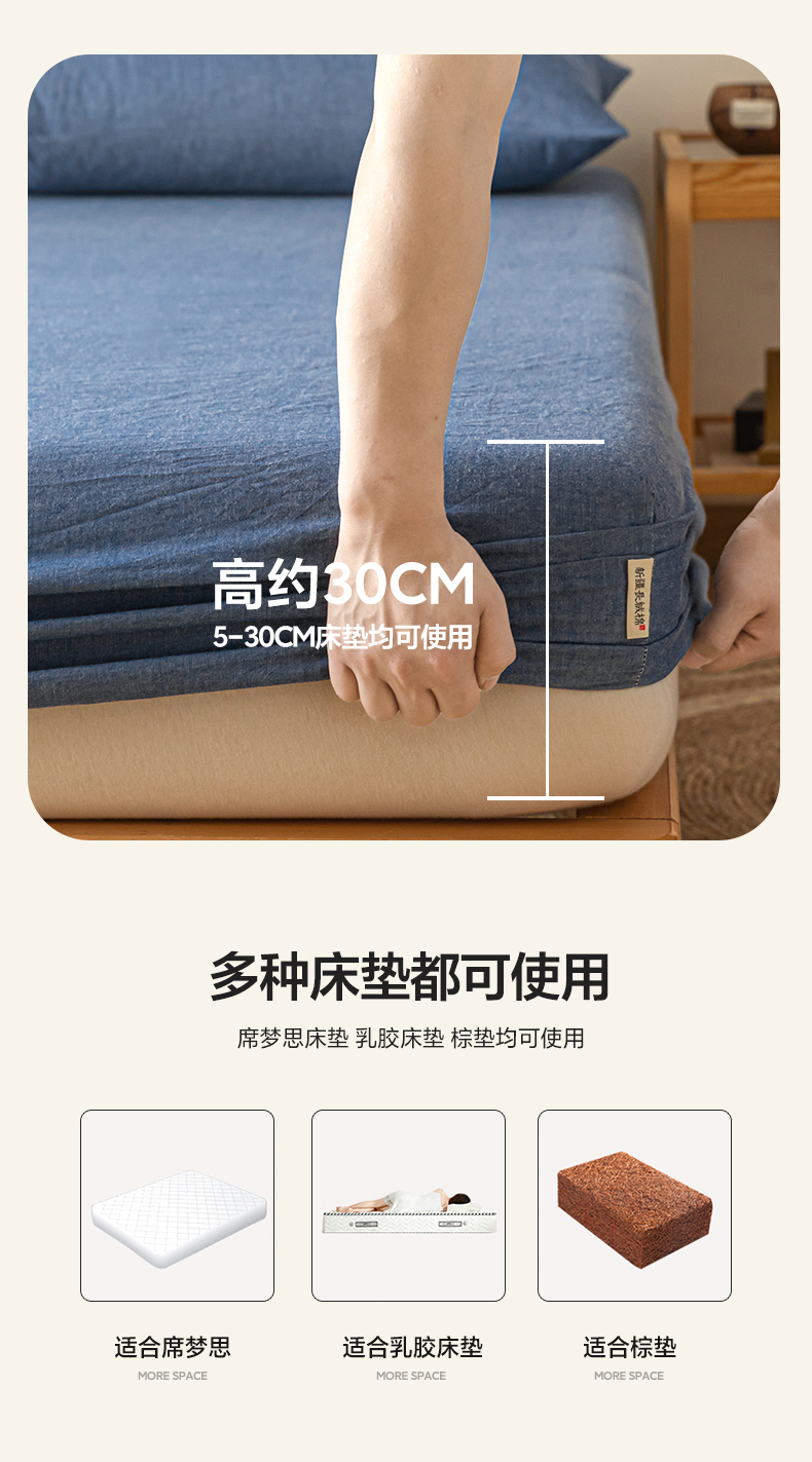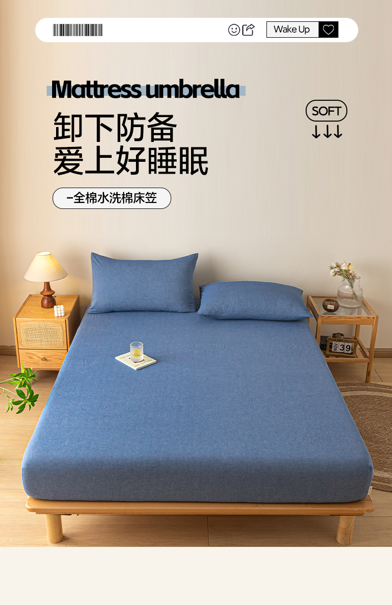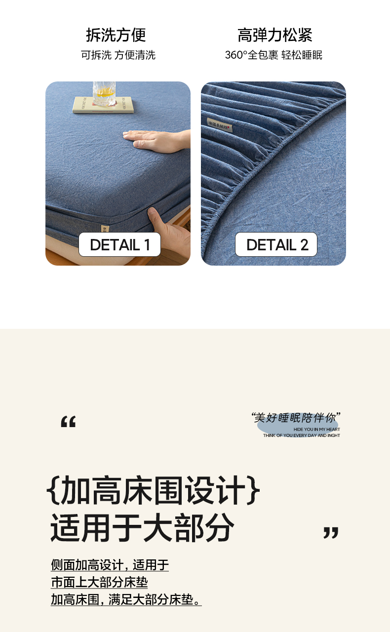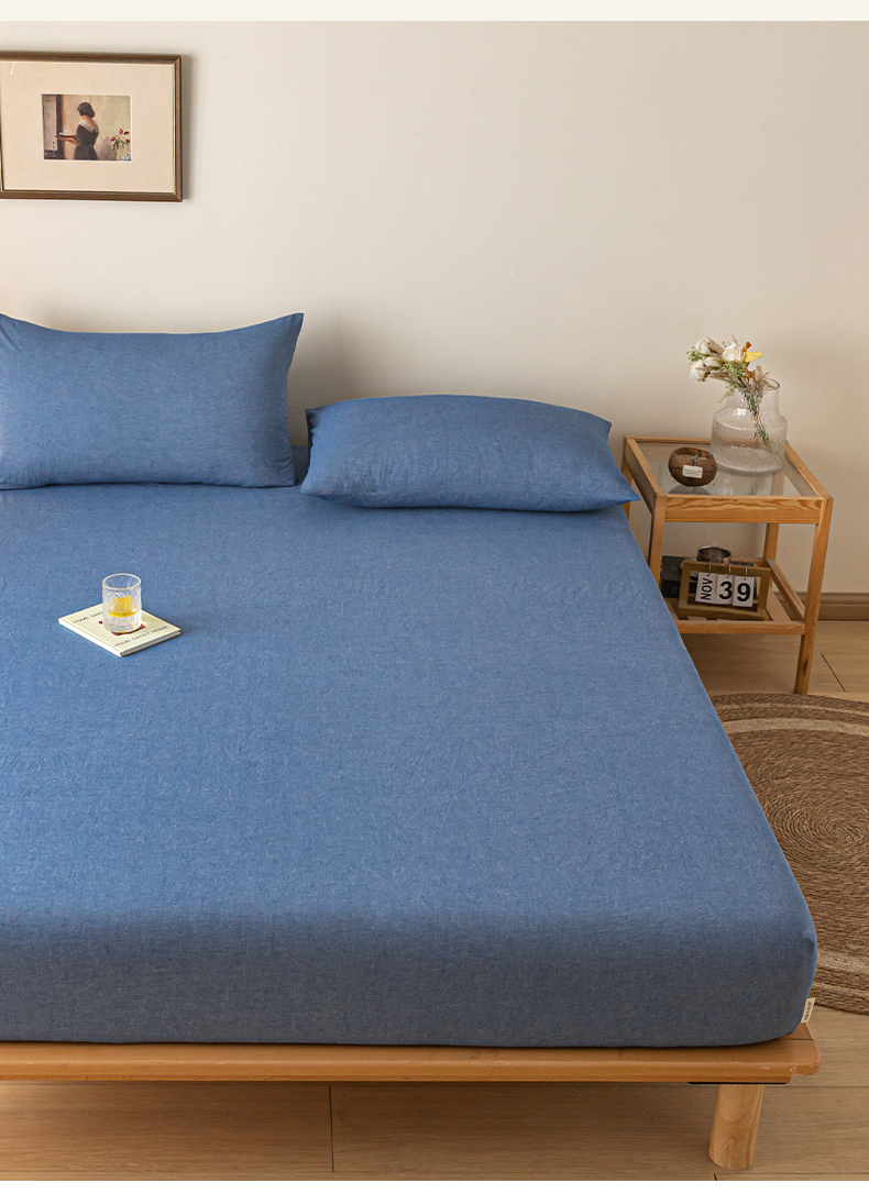 • 91家纺网 家纺一手货源 找家纺 卡伦家纺 2025全棉色织水洗棉单层床笠席梦思保护套 牛仔蓝