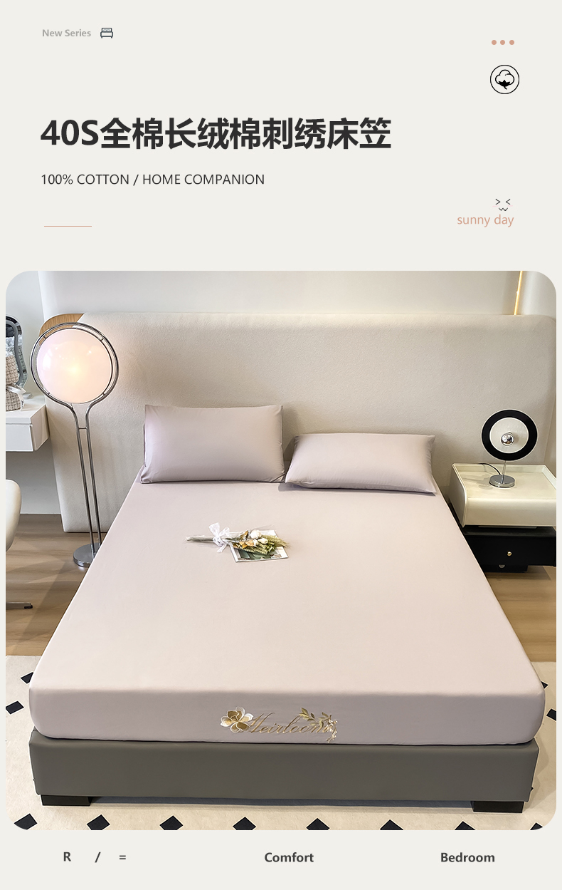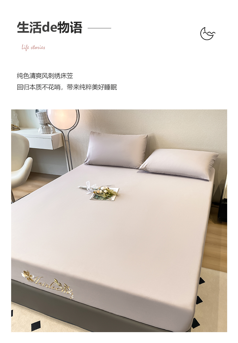 • 91家纺网 家纺一手货源 找家纺 暖季家纺 2025新款初夏40s刺绣全棉床笠 初夏奶昔白