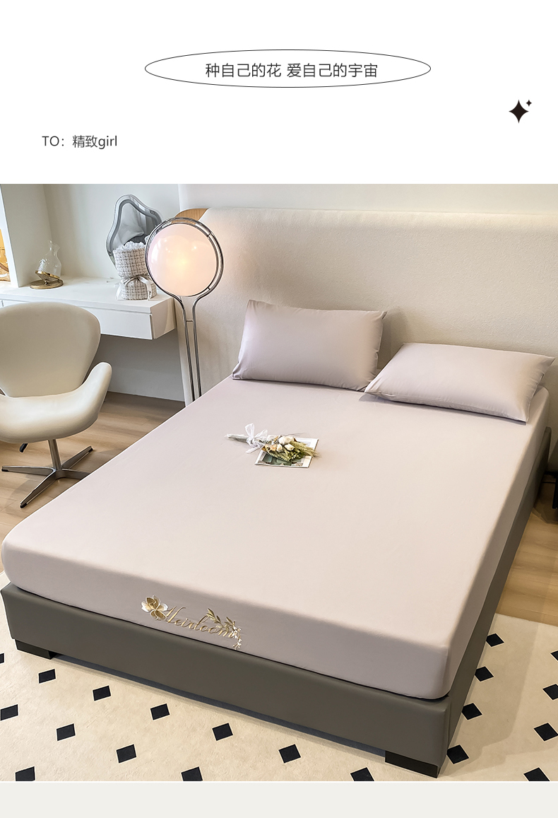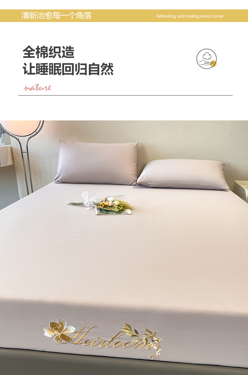 暖季家纺 2025新款初夏40s刺绣全棉床笠 初夏奶昔白