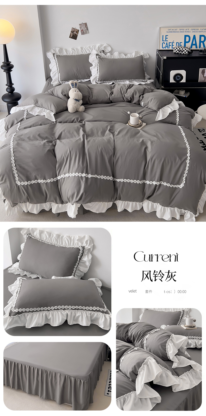 当前位置: 91家纺网 > 商品网购 > 床品套件 > 四件套 > 水洗棉四件套 > 春光里 2024新款水洗棉花边款四件套-克洛伊 风铃灰