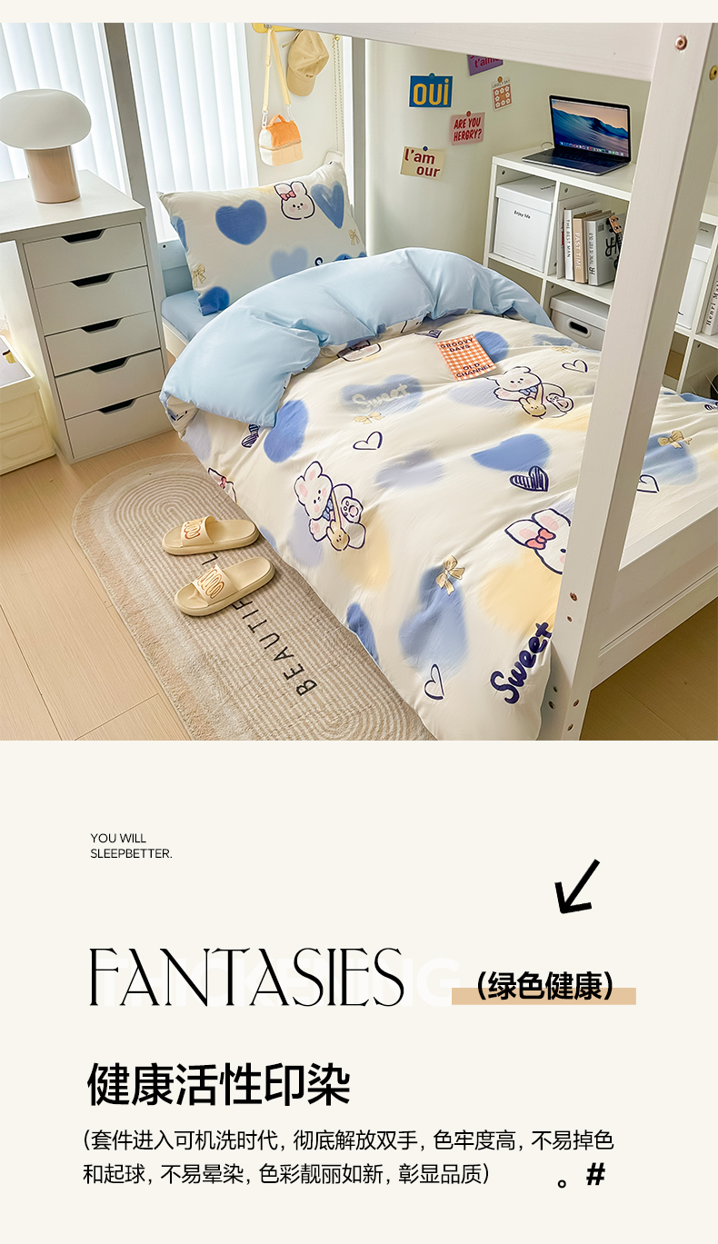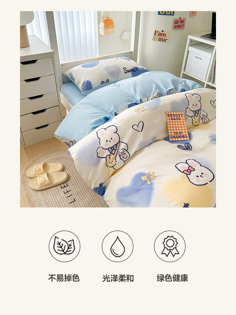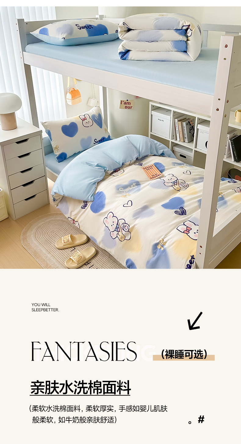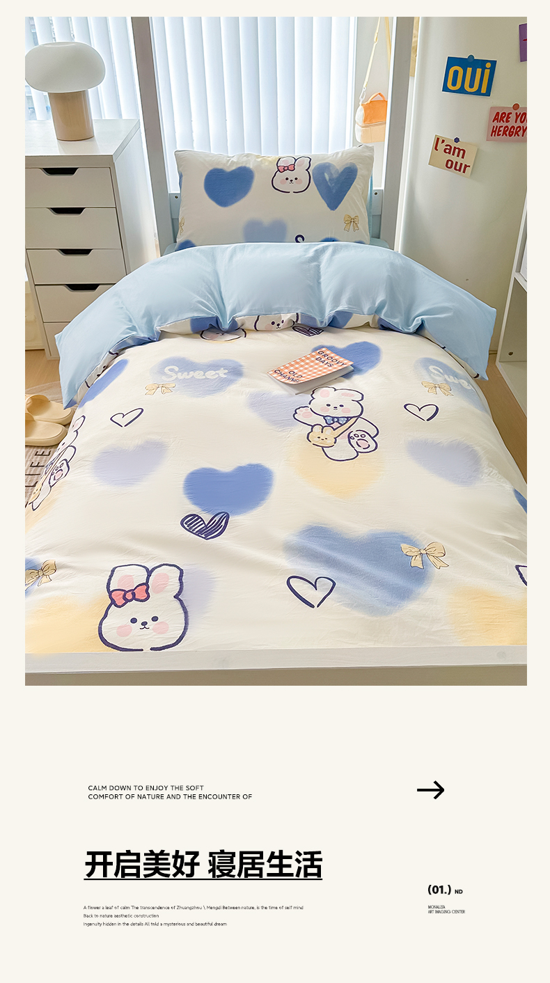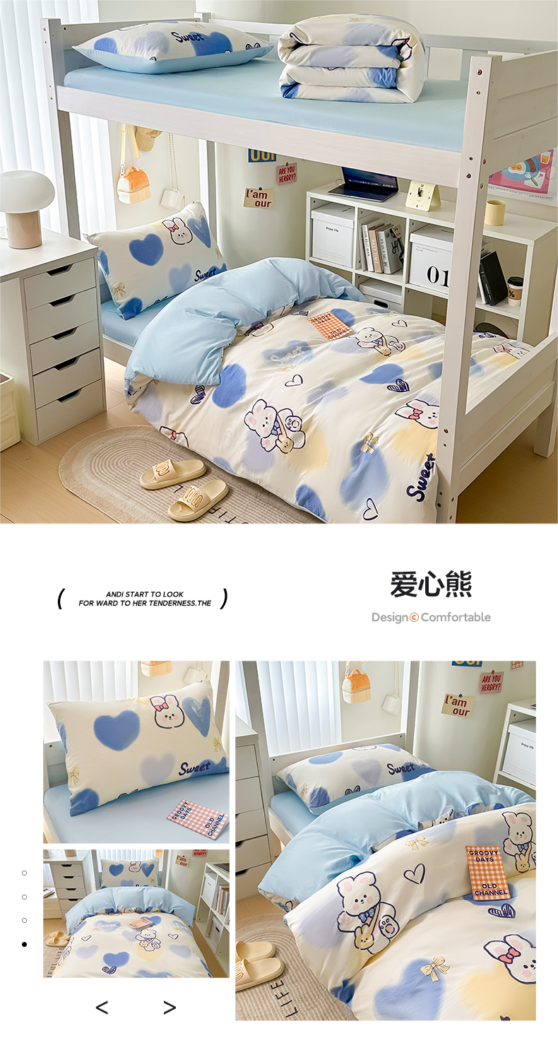 商品名称:2024新款水洗棉小清新印花学生三件套(床笠床套款) 爱心熊