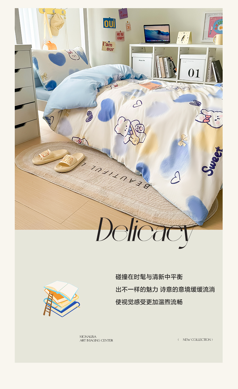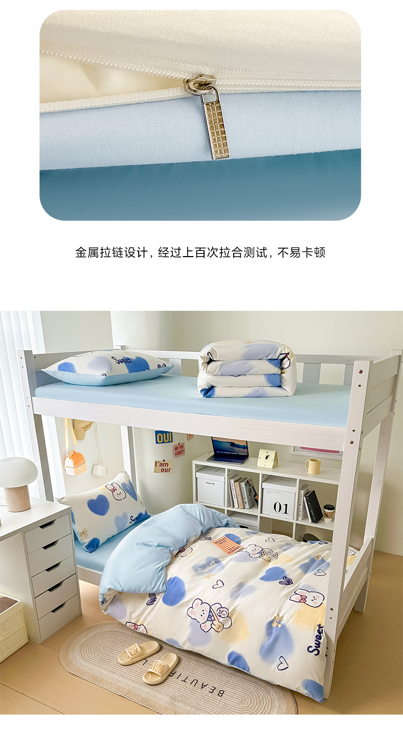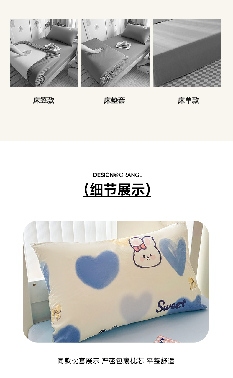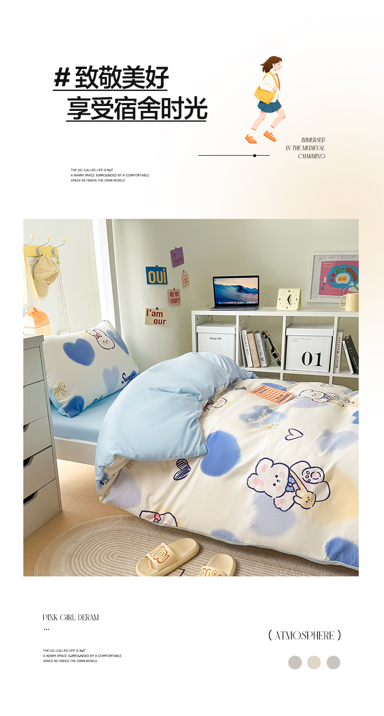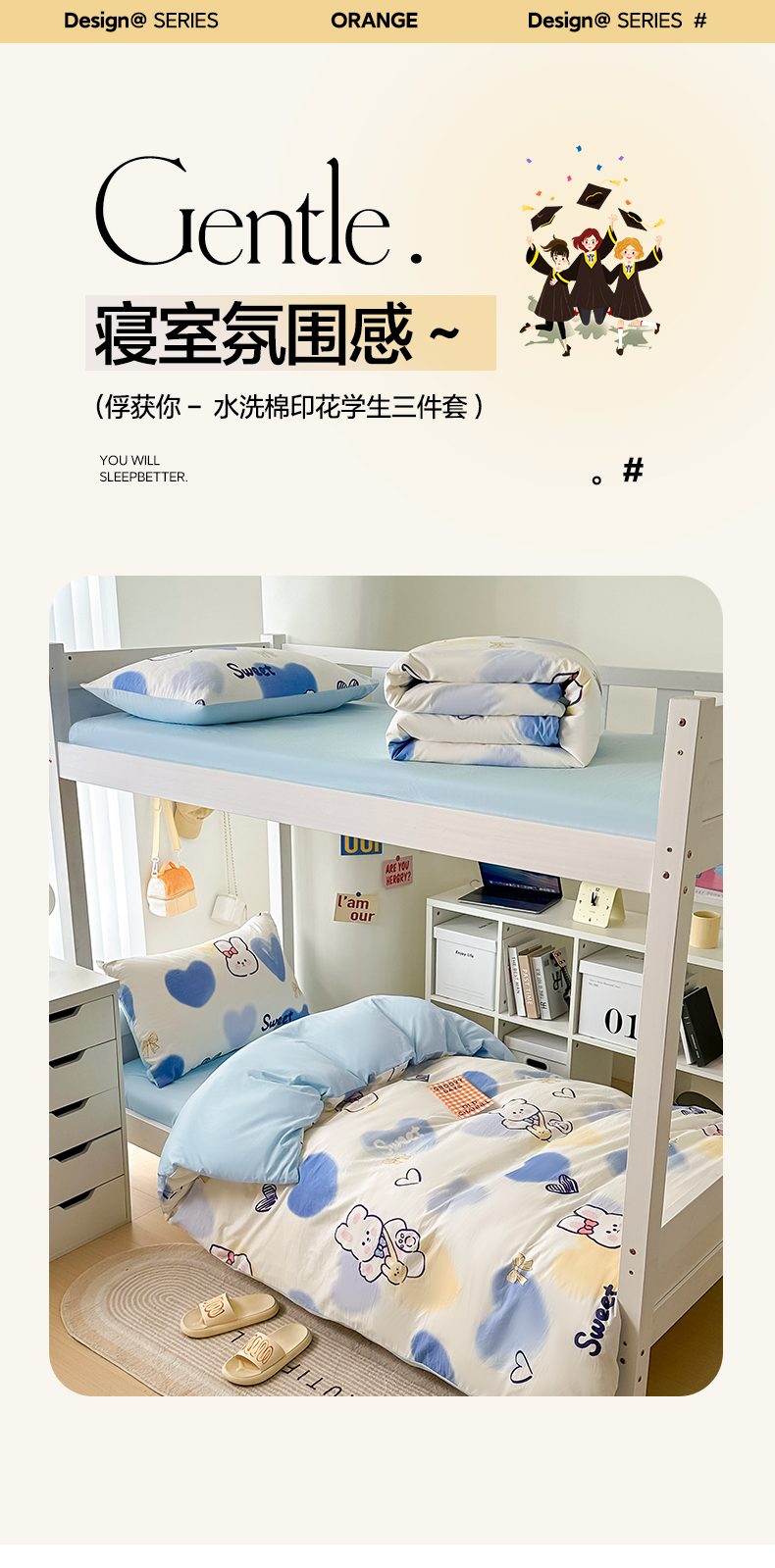 商品名称:2024新款水洗棉小清新印花学生三件套(床笠床套款) 爱心熊