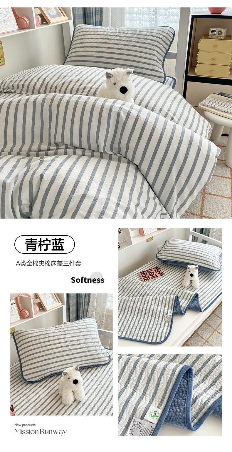 商品名称:沐纯家居 2024新款开学季(A类全棉水洗棉,棉加绒)床盖三件套 青柠蓝