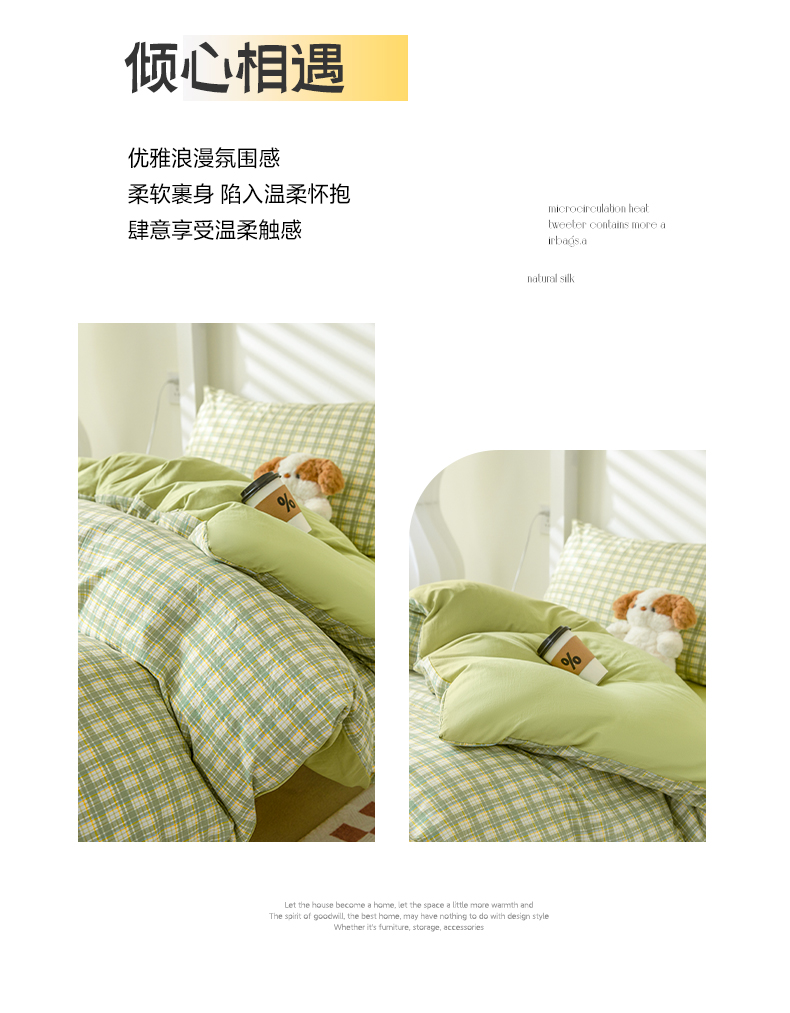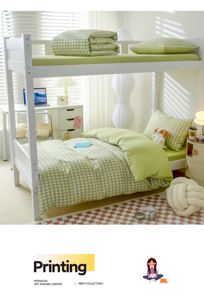 2024新款水洗棉无印格子学生三件套(床笠床套款) G-清雅绿+果绿