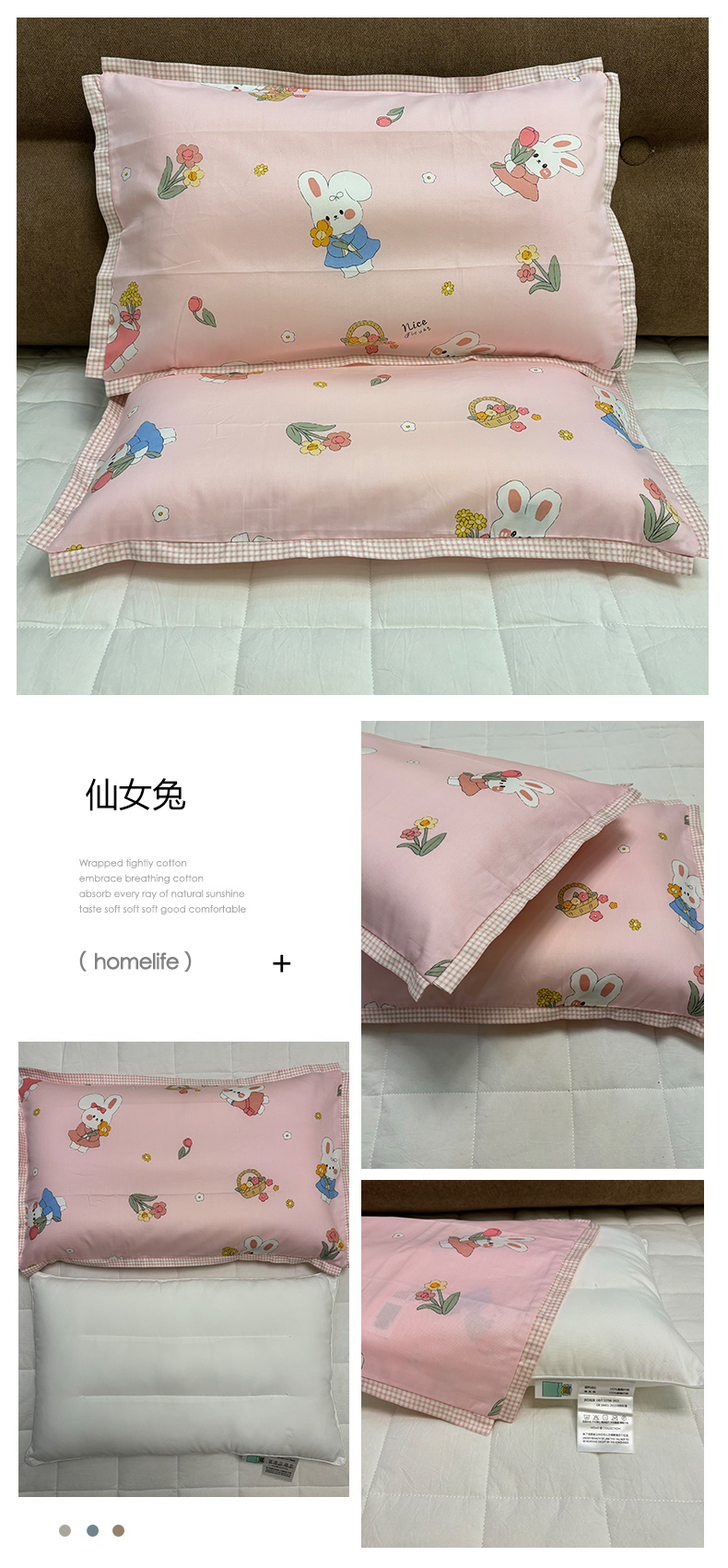 商品名称:良佐生活 2024新款A类133x72铂金全棉枕套枕头枕芯七彩童年系列 枕套+枕芯 仙女兔