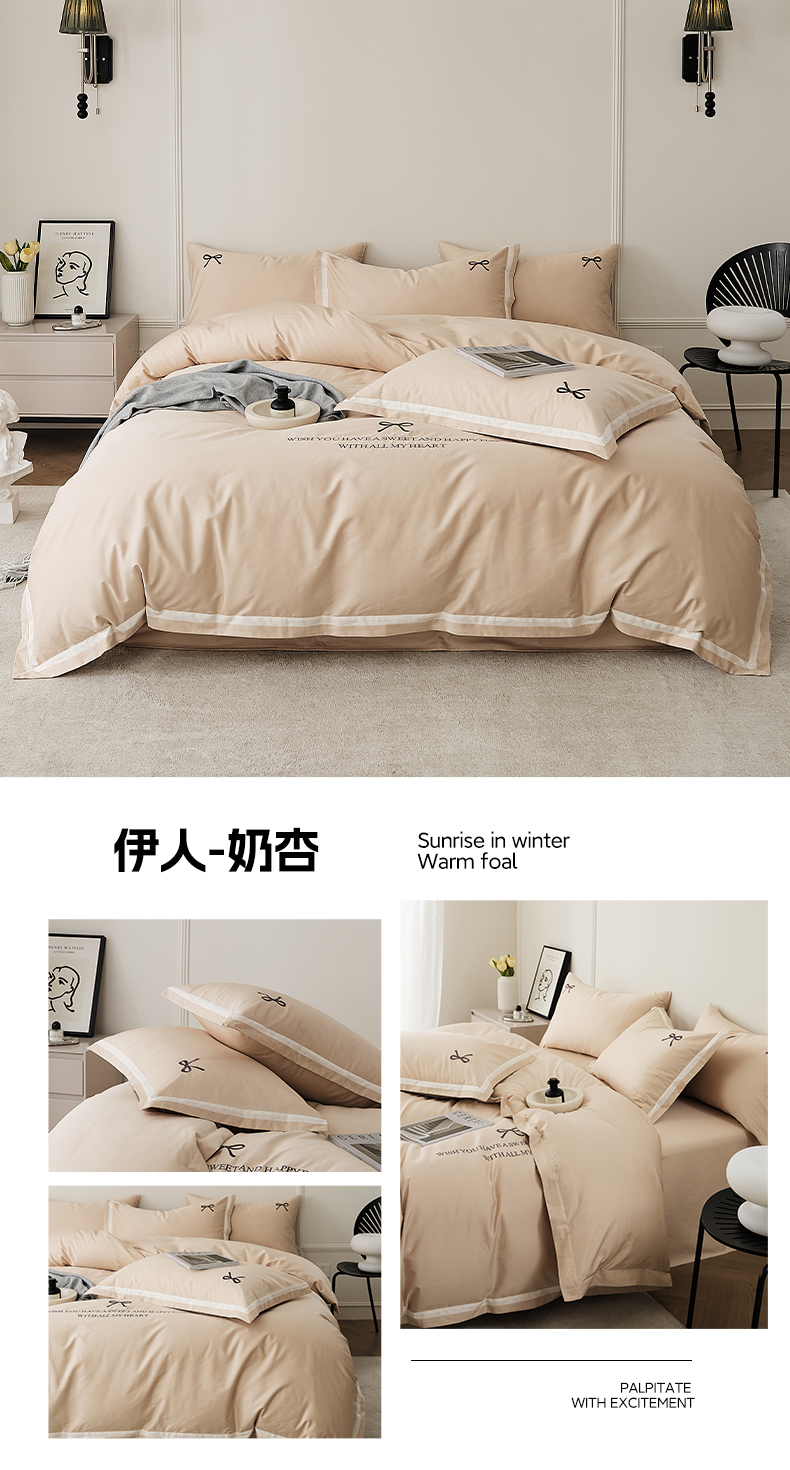 (总)EH家居 2026新款长绒棉窄边四件套,白茶奶黄,冰草紫,初春夏田,焦糖橙,静谧蓝,泡沫粉,青葱色,山核桃棕