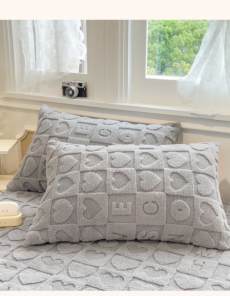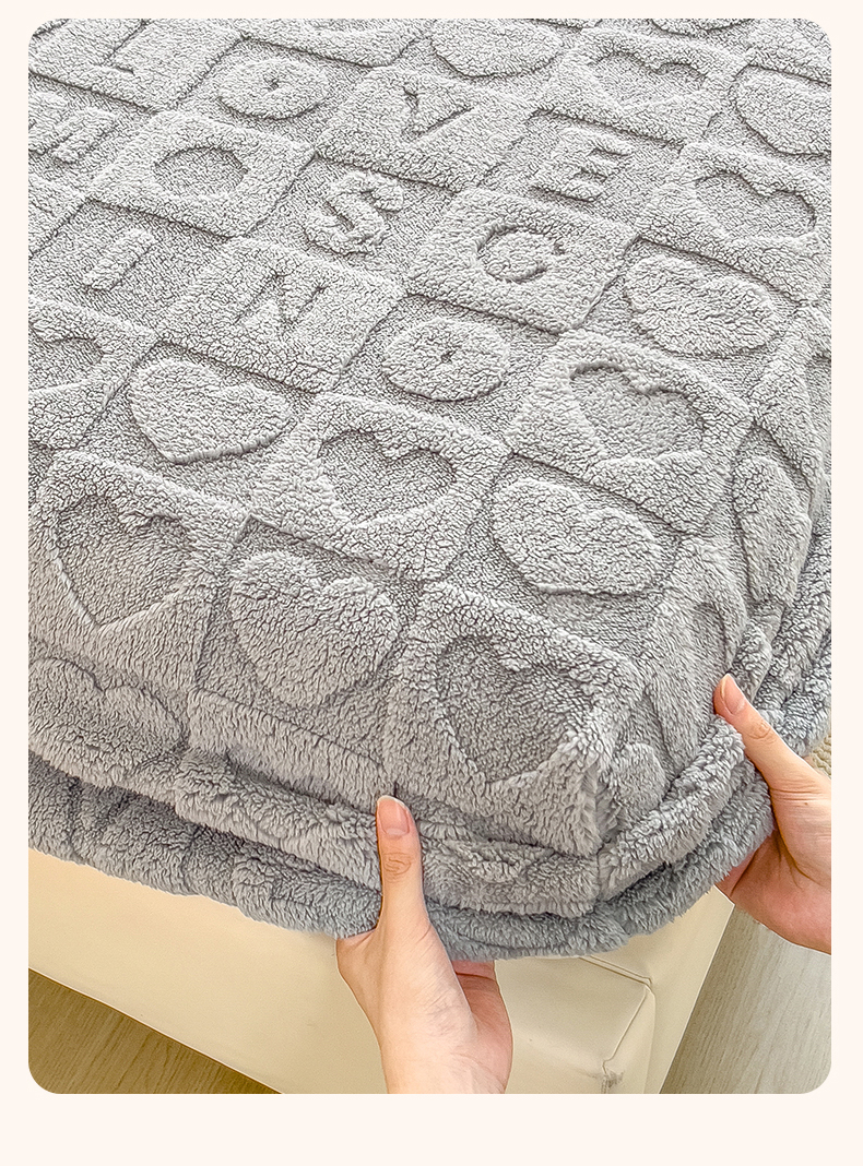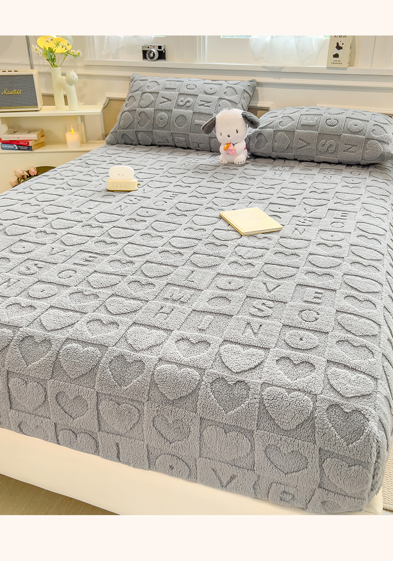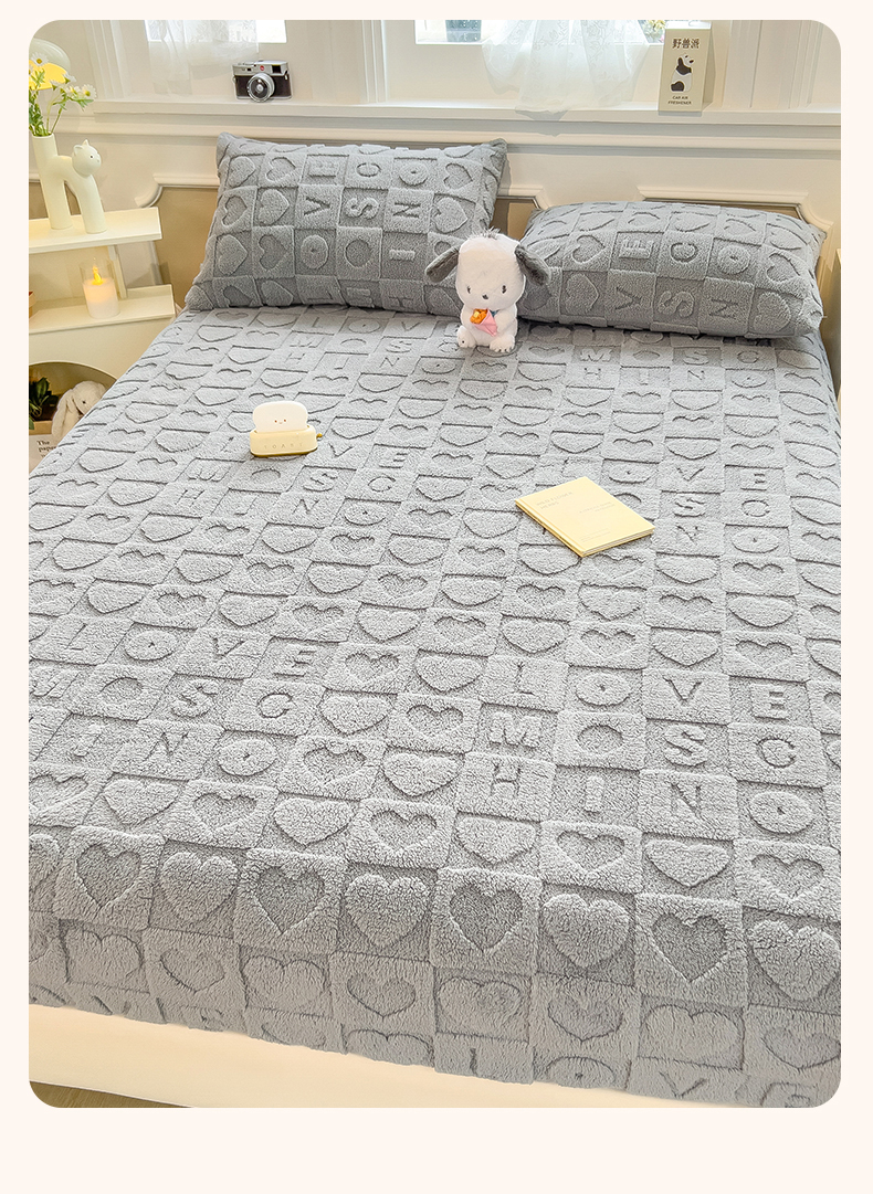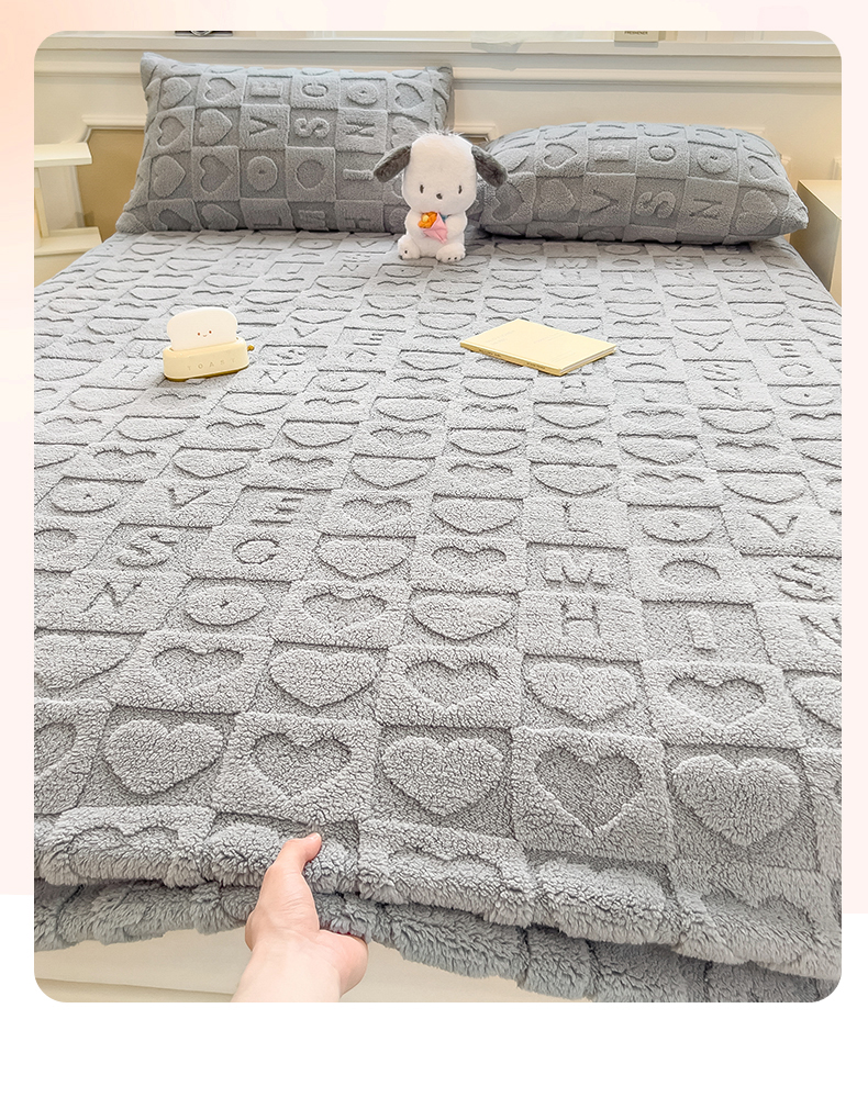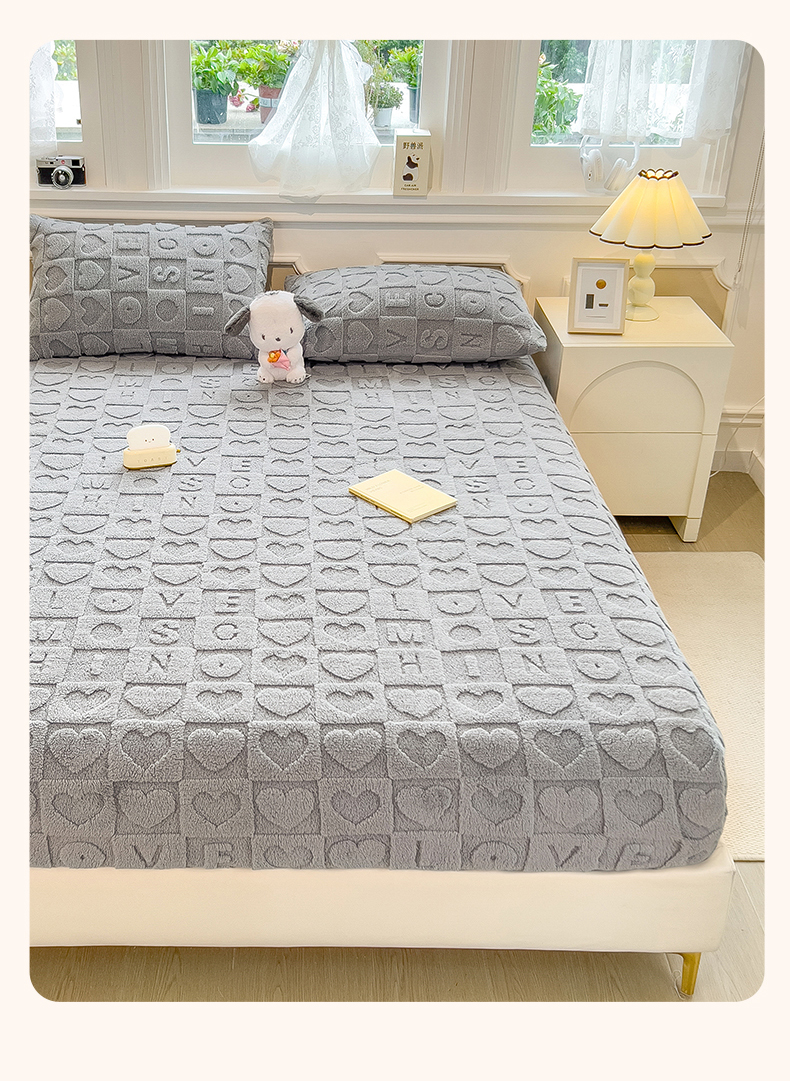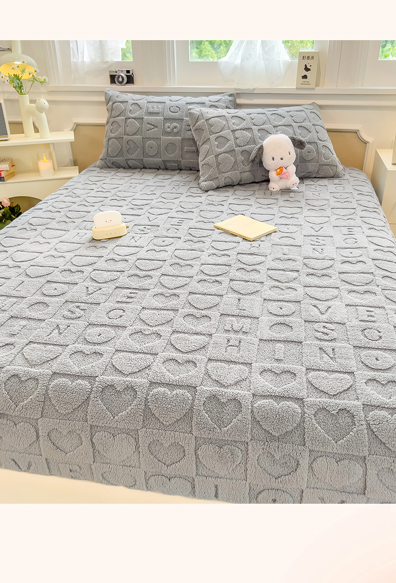 欧邦 新款爱心款提花塔芙绒床笠款单品床笠 雅致灰-床笠款