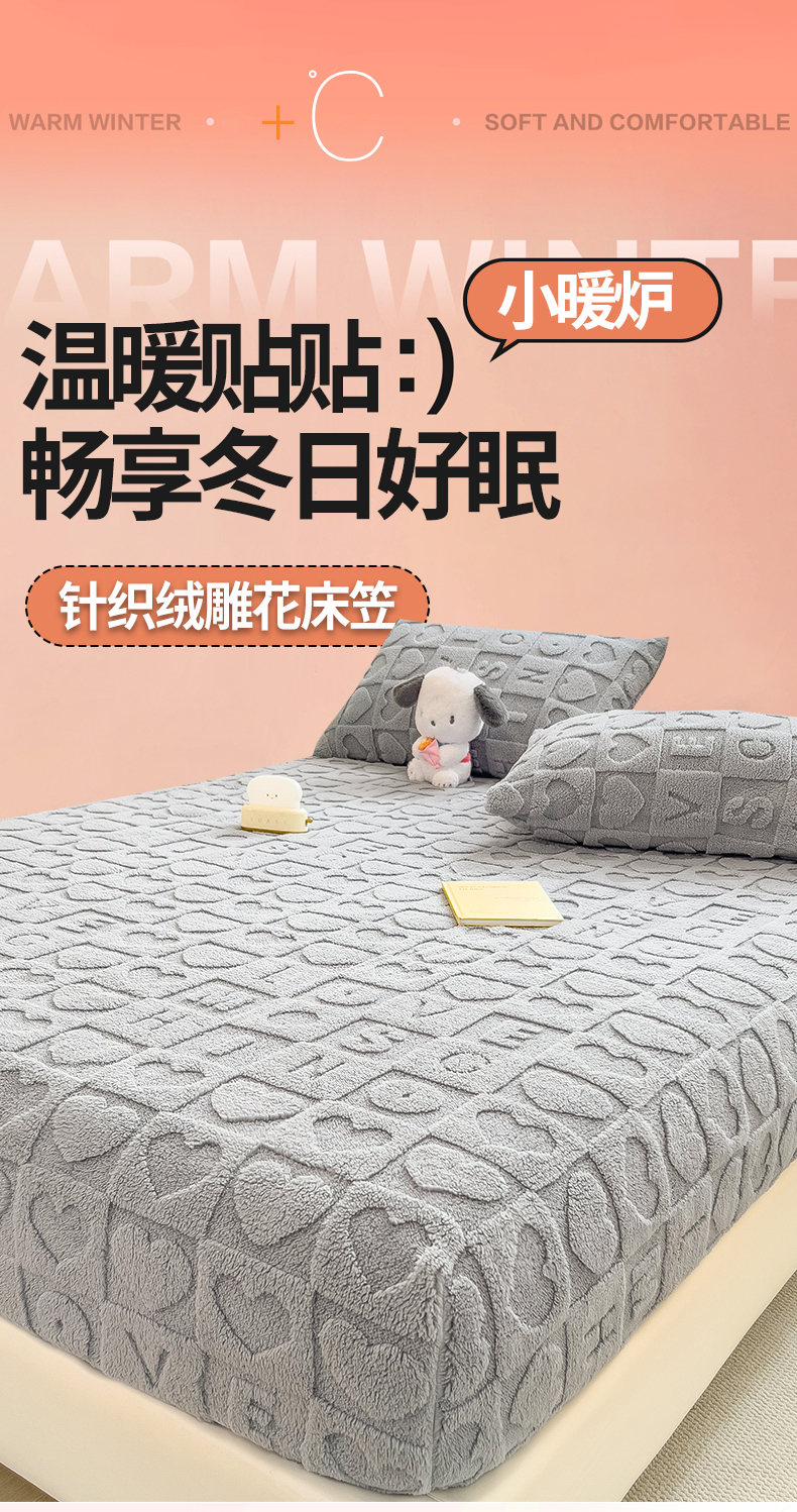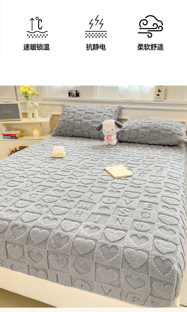 商品名称:欧邦 新款爱心款提花塔芙绒床笠款单品床笠 雅致灰-床笠款
