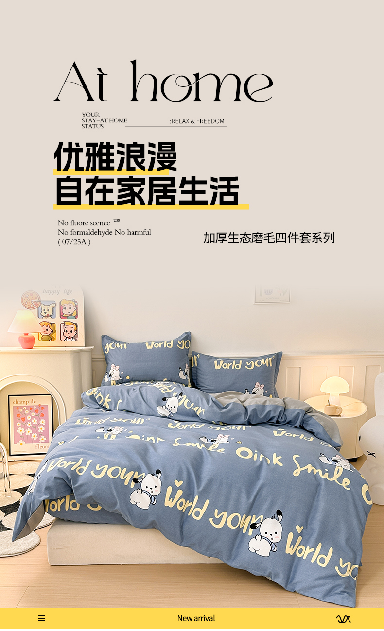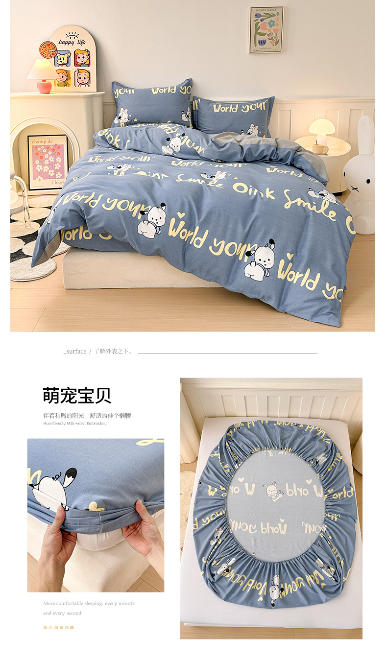 2025新款加厚生态磨毛床笠四件套 萌宠宝贝