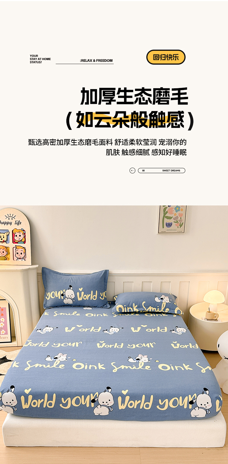 商品名称:2025新款加厚生态磨毛床笠四件套 萌宠宝贝