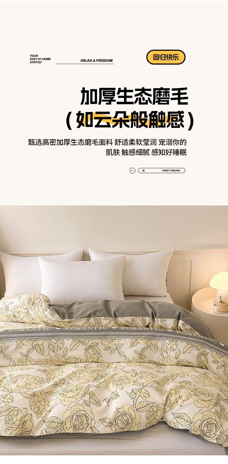 • 91家纺网 家纺一手货源 找家纺 2025新款加厚生态磨毛单被套 初恋
