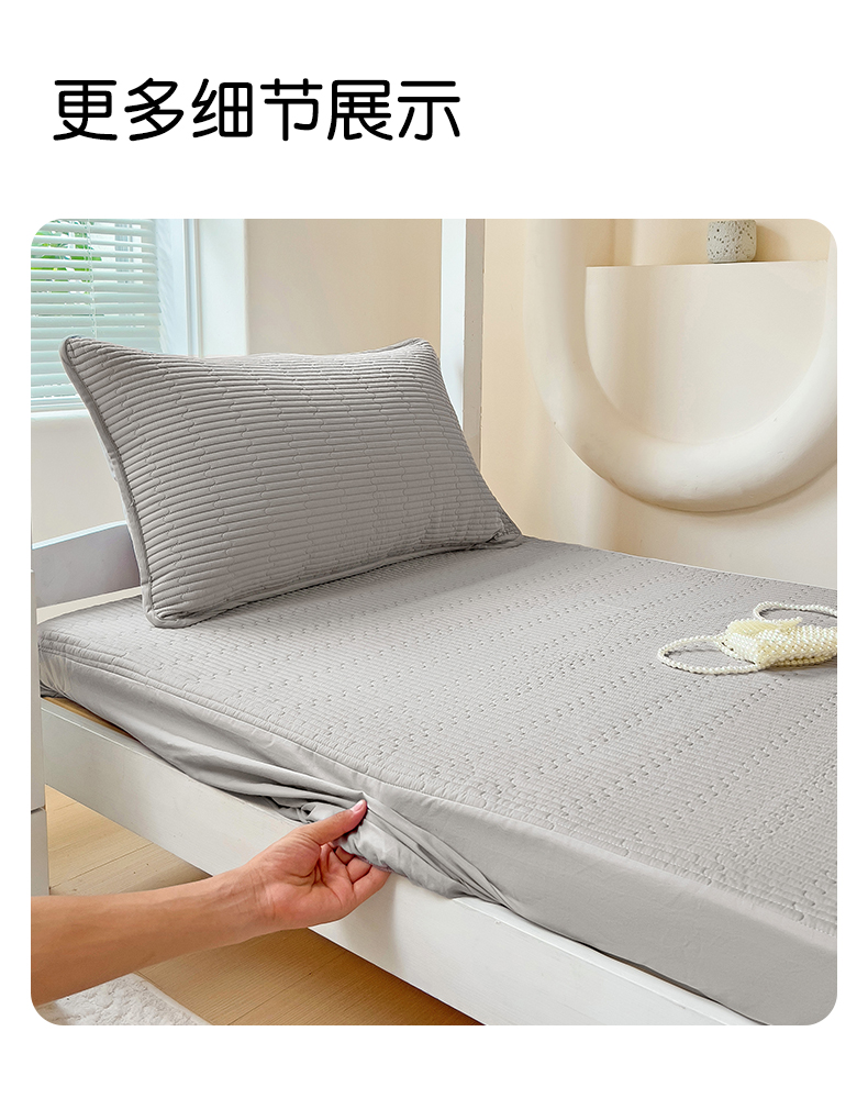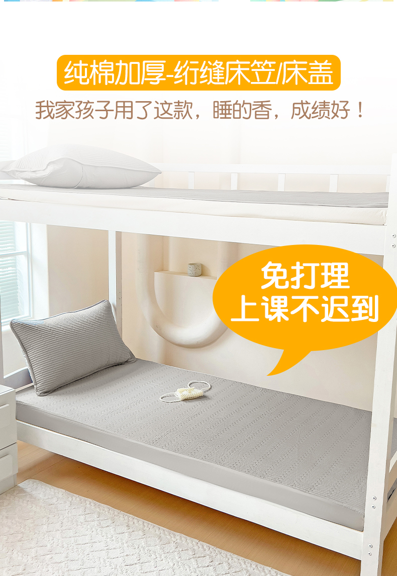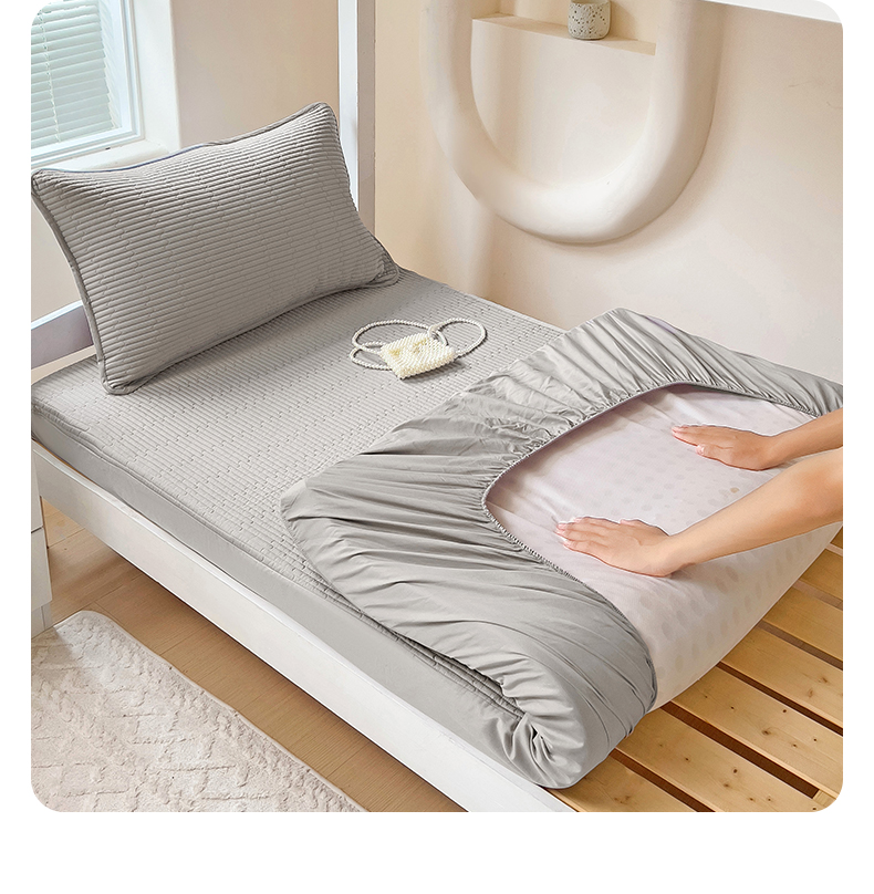 商品名称:漫时光 2025新款纯棉素色床盖学生宿舍夹棉床笠 雅致灰