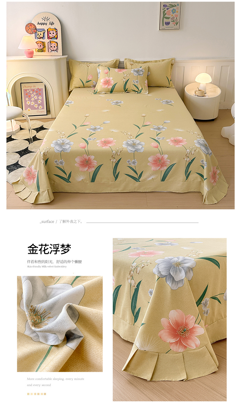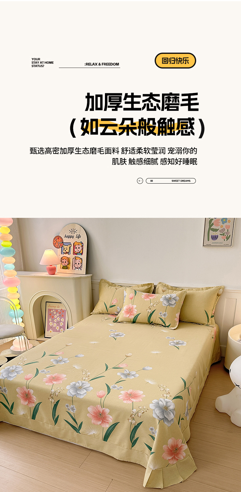 • 91家纺网 家纺一手货源 找家纺 2025新款加厚生态磨毛单床单 金花浮梦