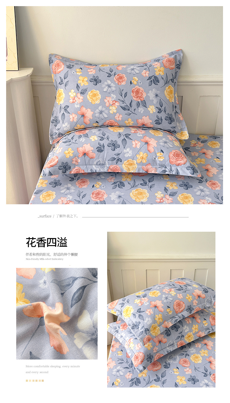 商品名称:2025新款加厚生态磨毛单枕套 花香四溢