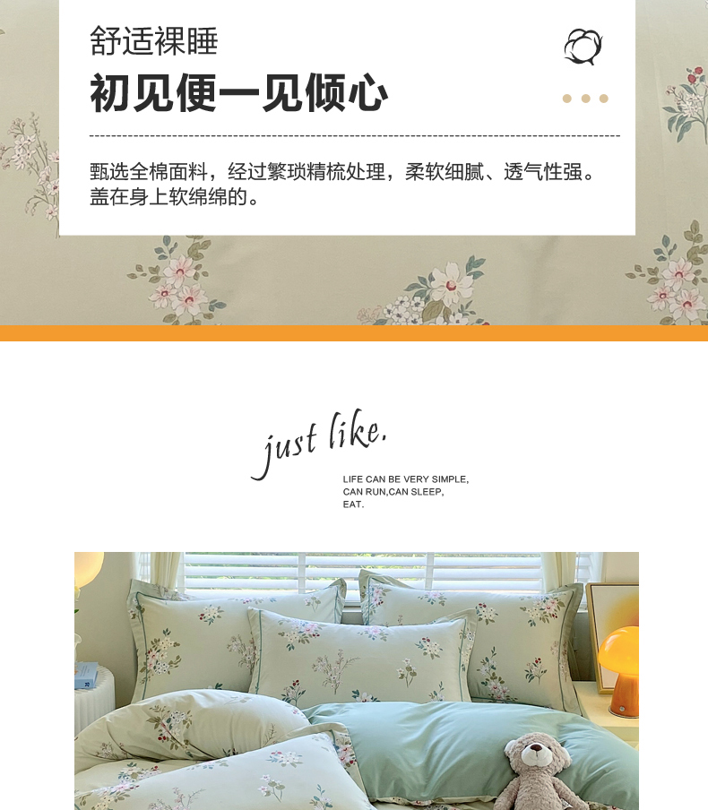 (总)星期三 2025年4月新款铂金全棉纯棉13372四件套 加微信有会员价,橙日幽香,花的旅途,花几度-绿,花佳境-咖,花枝草蔓,柔纱花影,棠影寻-粉,小雨录-紫,星际漫游