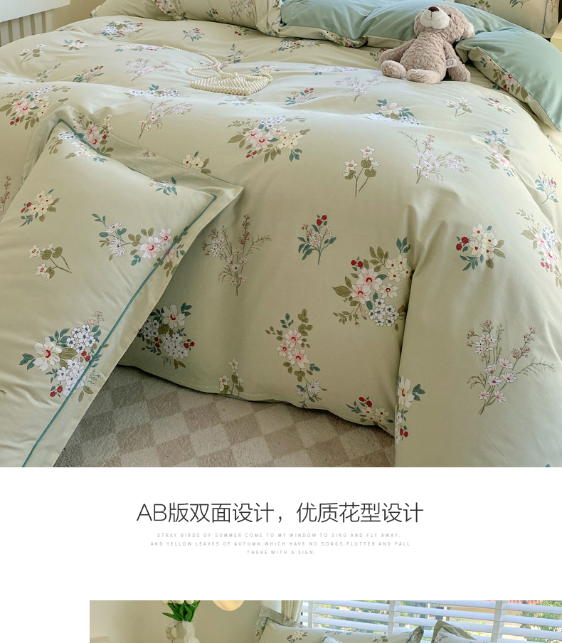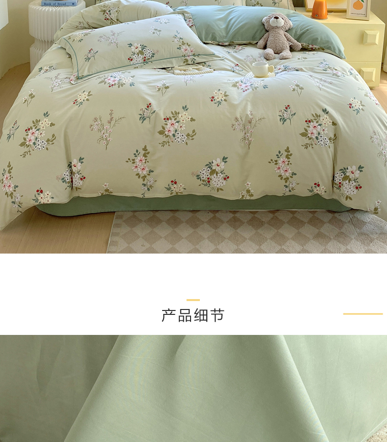 (总)星期三 2021年7月新款铂金全棉13372四件套(加老板微信有会员价),诺微花开,仙菊,小轮船,小糖豆,月光恋曲-绿