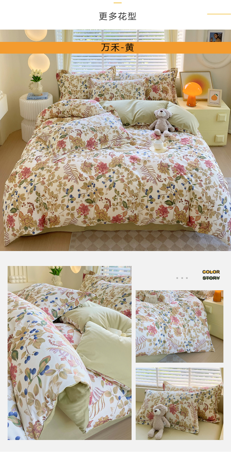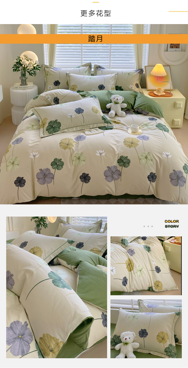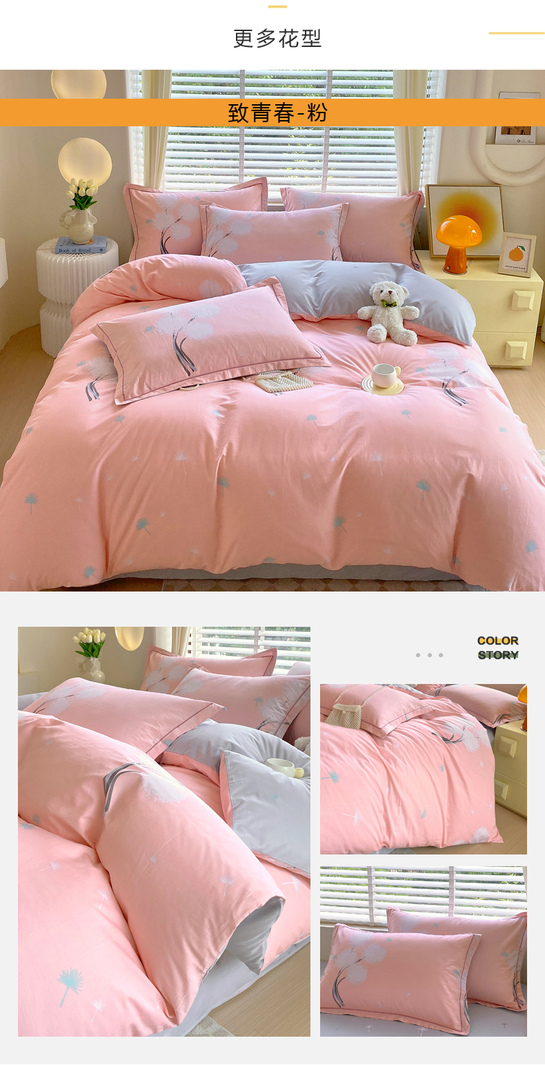 (总)星期三 2021年4月新款全棉13372四件套(加老板微信有会员价),彩色世界,点点星光-粉,点点星光-灰,书香年华,晚风-绿,叶之雨露,玉树花开