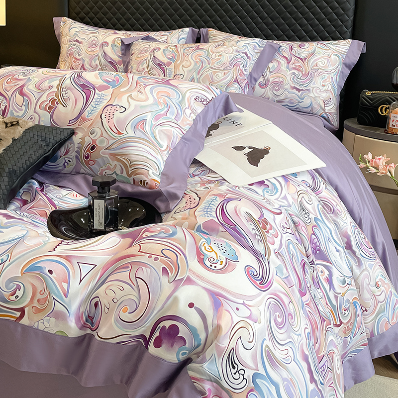 (总)栩裕纺织 2025新款艾康阳绒数码印花四件套,巴黎夜色,曼荷,丛草集,花玉露,微光,洛佩兹-粉,洛佩兹-黄,魔力奇迹,叶语柔情
