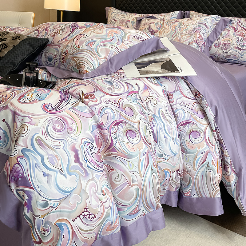 栩裕纺织 2024新款丝棉臻绒磨毛数码印花四件套--兰羽系列 可莉