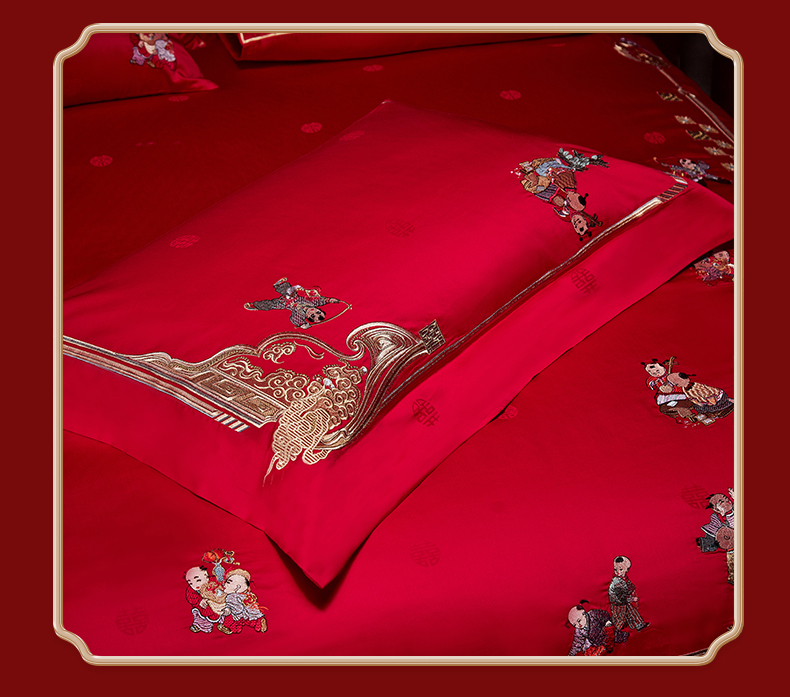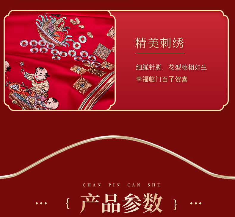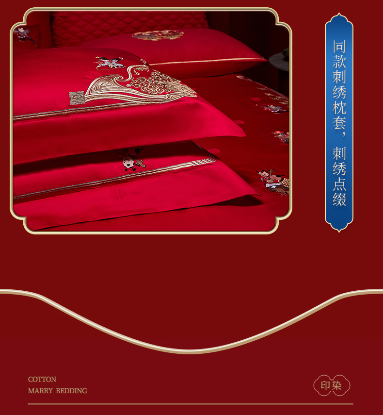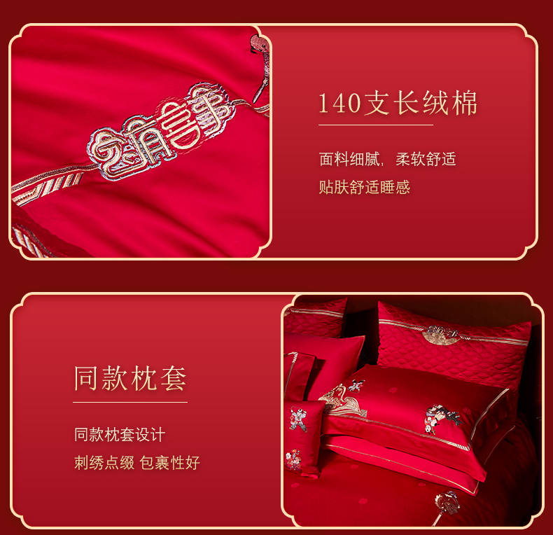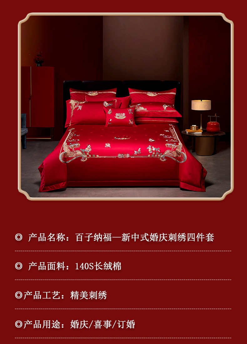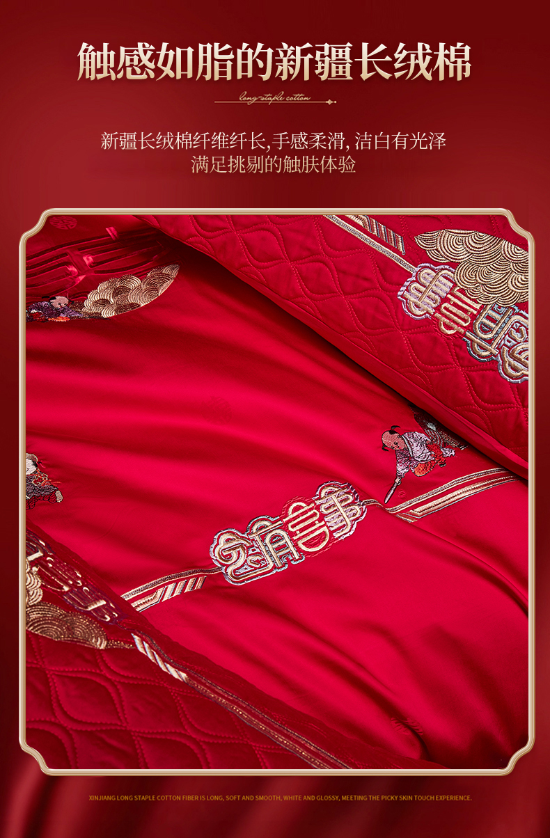 当前位置: 91家纺网 > 商品网购 > 床品套件 > 四件套 > 长绒棉四件套 > 2025新款长绒棉长绒棉贡缎提花款新中式古典韵味精美刺绣婚庆四件套多件套 喜满天下-