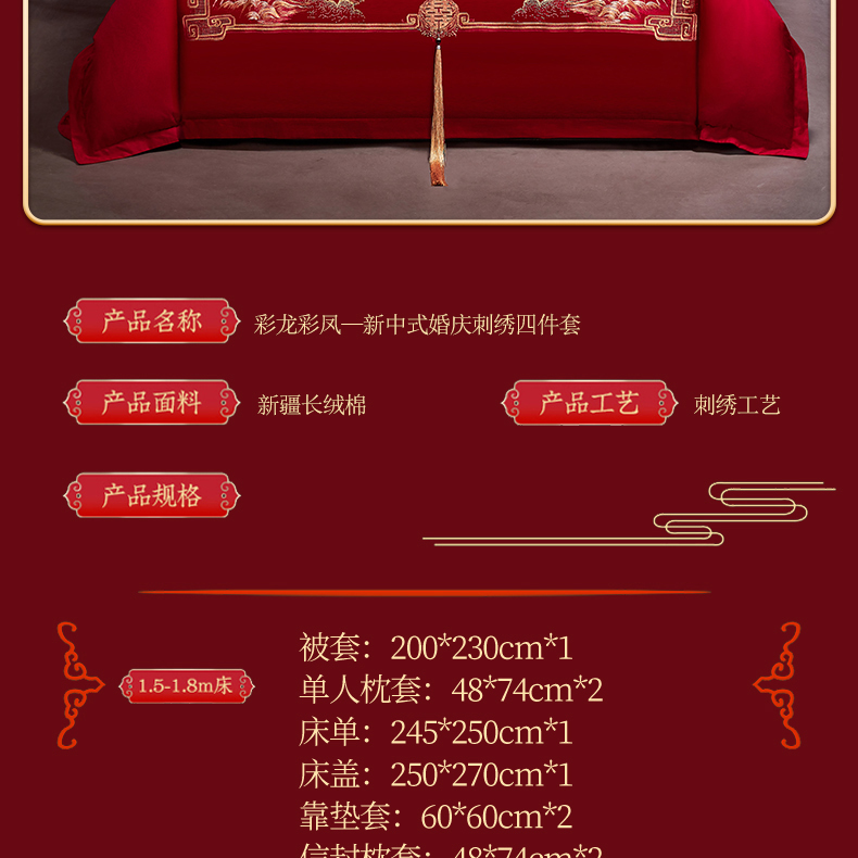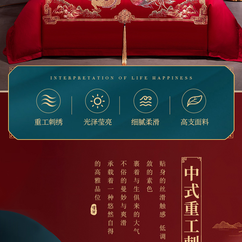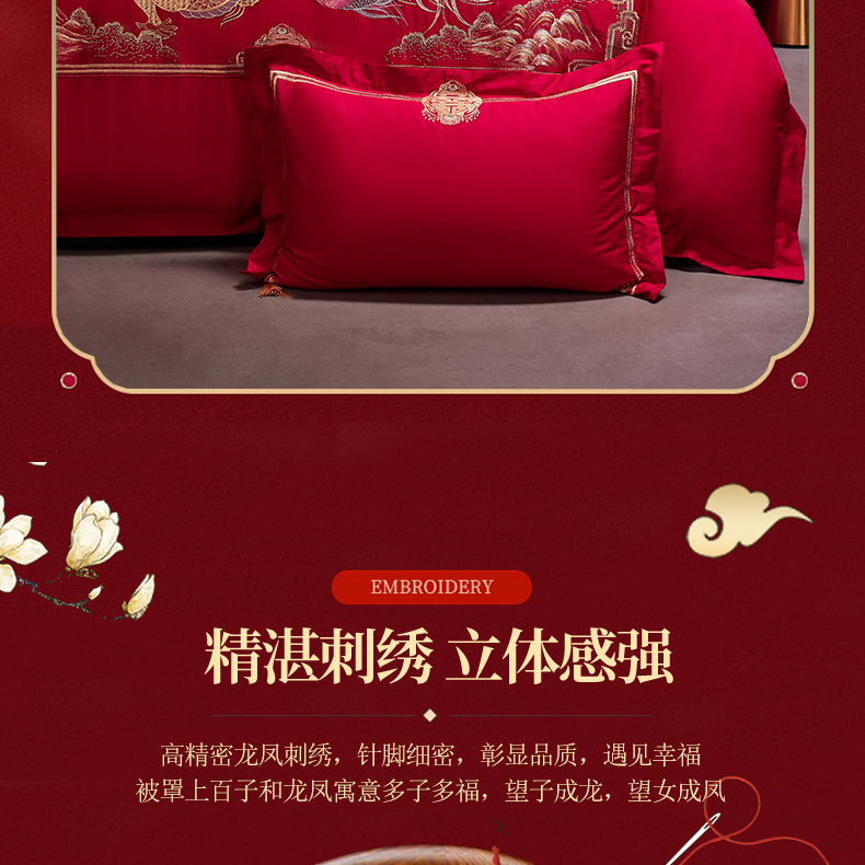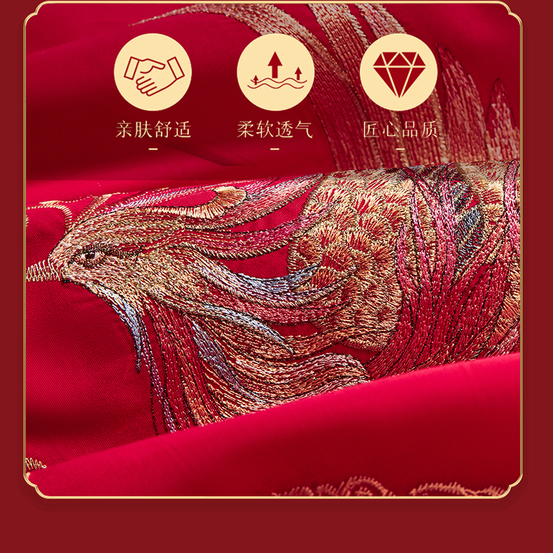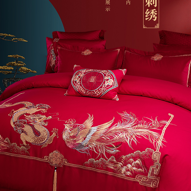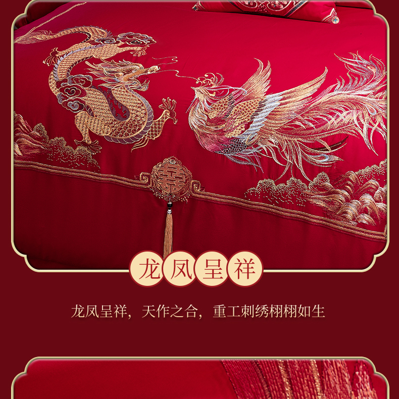 当前位置: 91家纺网 > 商品网购 > 床品套件 > 四件套 > 全棉普通四件套 > 2025新款40s全棉长绒棉新中式刺绣婚庆四件套多件套 彩龙彩凤
