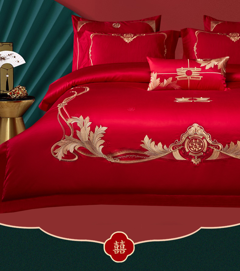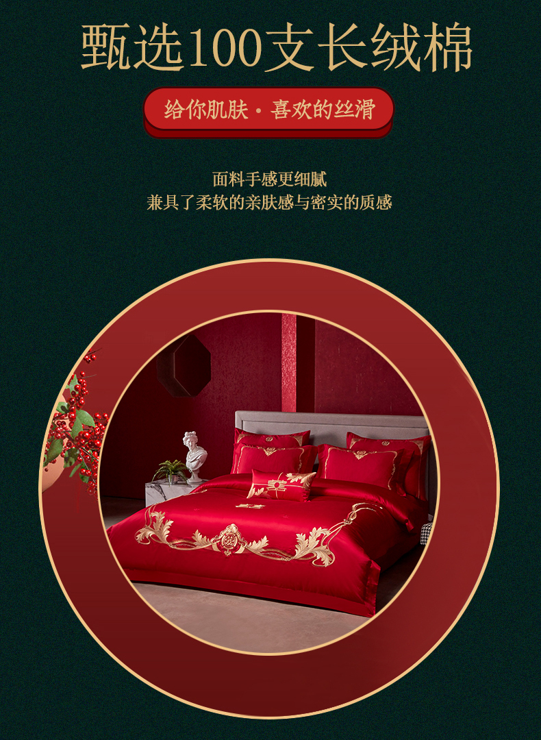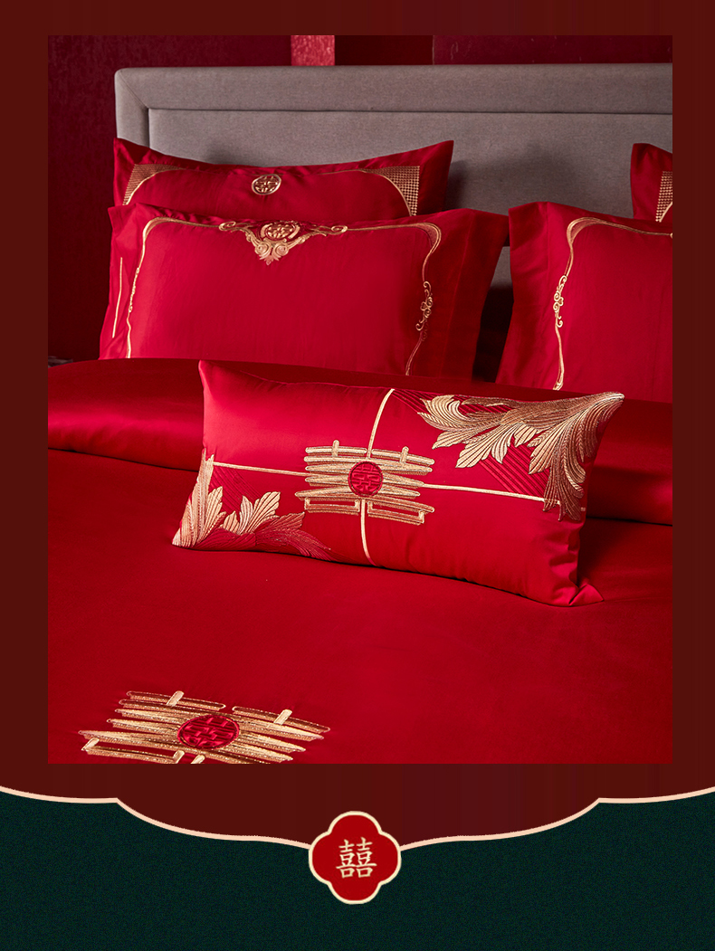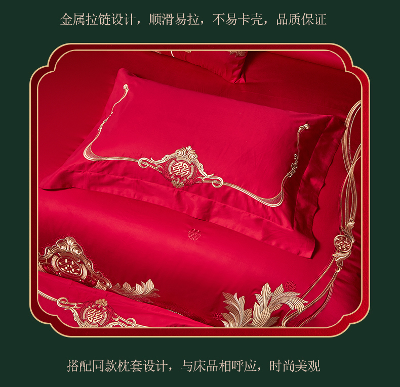 当前位置: 91家纺网 > 商品网购 > 床品套件 > 四件套 > 全棉普通四件套 > 2025新款40s全棉长绒棉新中式刺绣婚庆四件套多件套 心爱恋