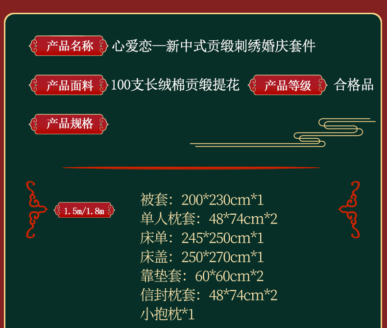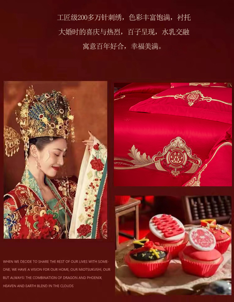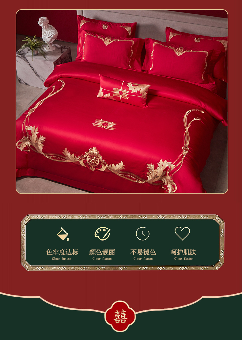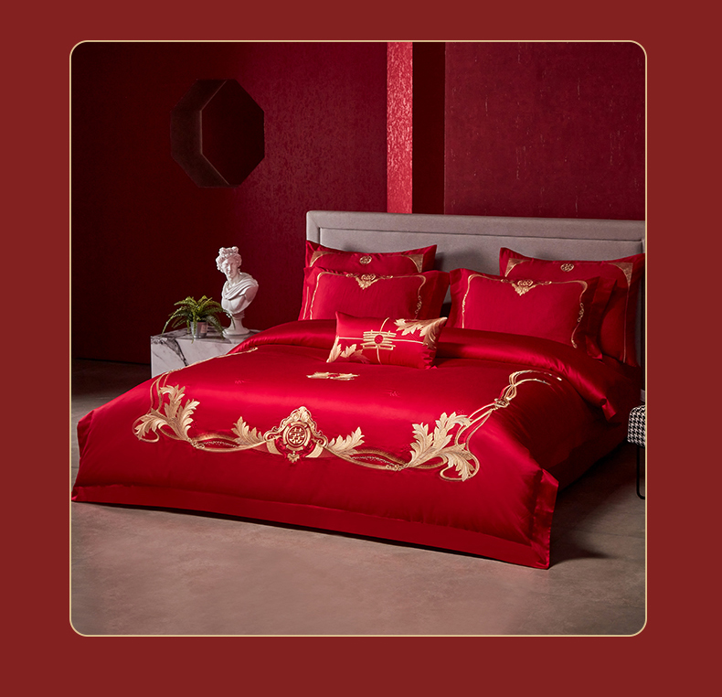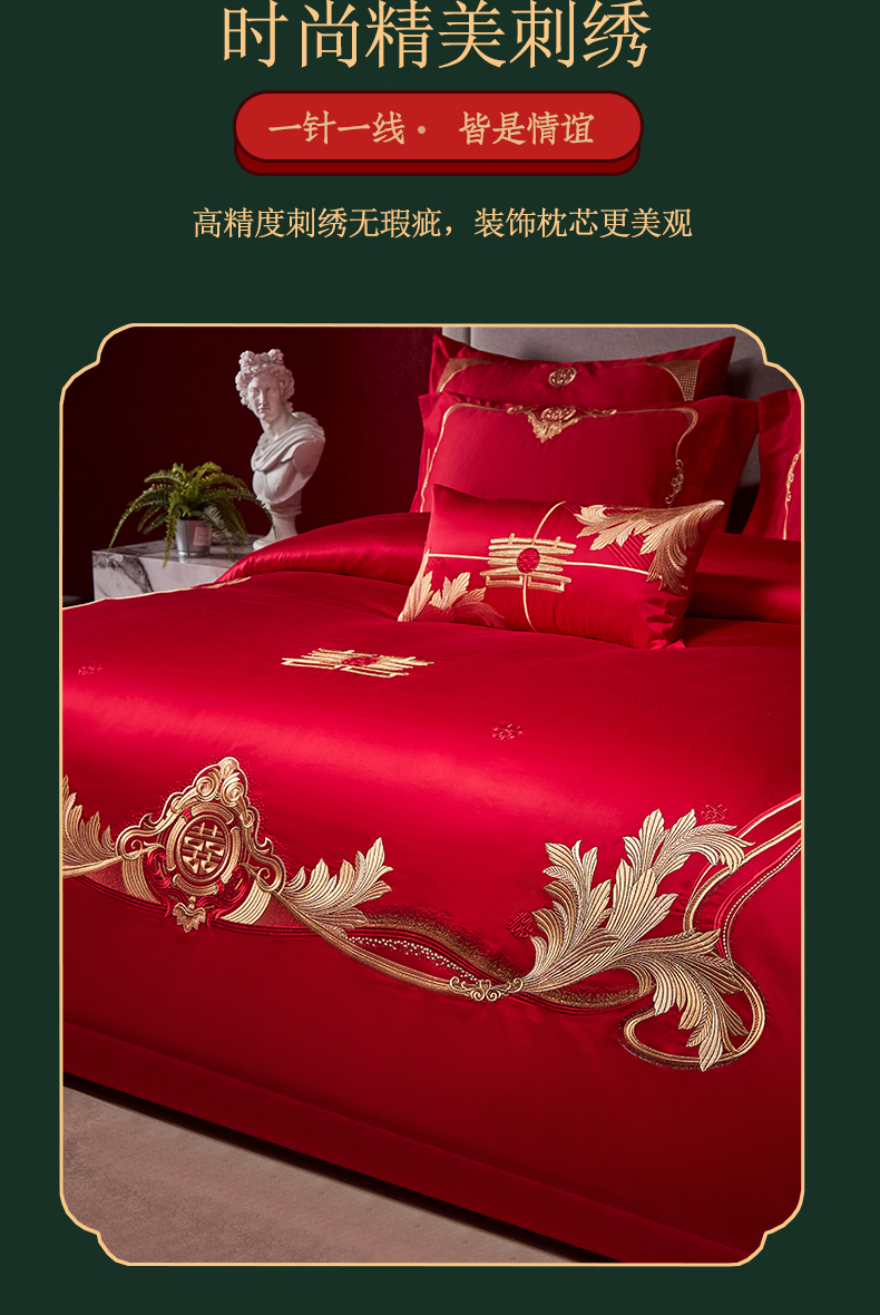 当前位置: 91家纺网 > 商品网购 > 床品套件 > 四件套 > 全棉普通四件套 > 2025新款40s全棉长绒棉新中式刺绣婚庆四件套多件套 心爱恋