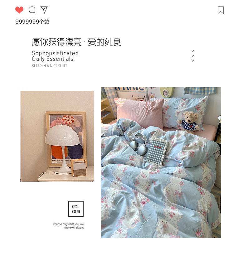 当前位置: 91家纺网 > 商品网购 > 床品套件 > 四件套 > 水洗棉四件套 > 原素 2024学生季专属A类水洗棉印花四件套 一首恋曲