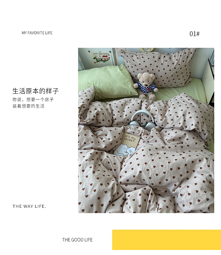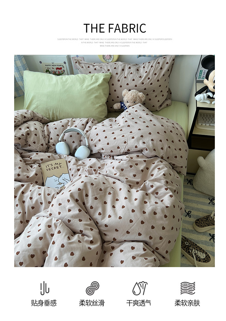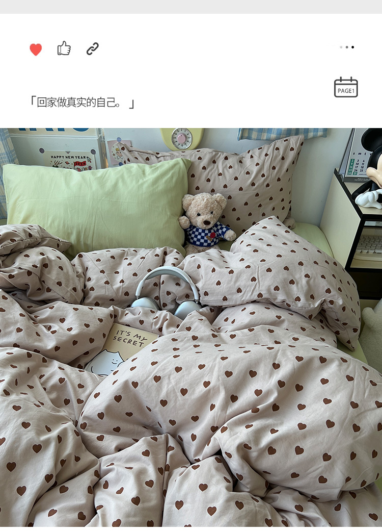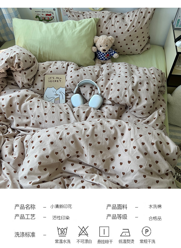 当前位置: 91家纺网 > 商品网购 > 床品套件 > 四件套 > 水洗棉四件套 > 原素 2024学生季专属A类水洗棉印花四件套 复古爱心
