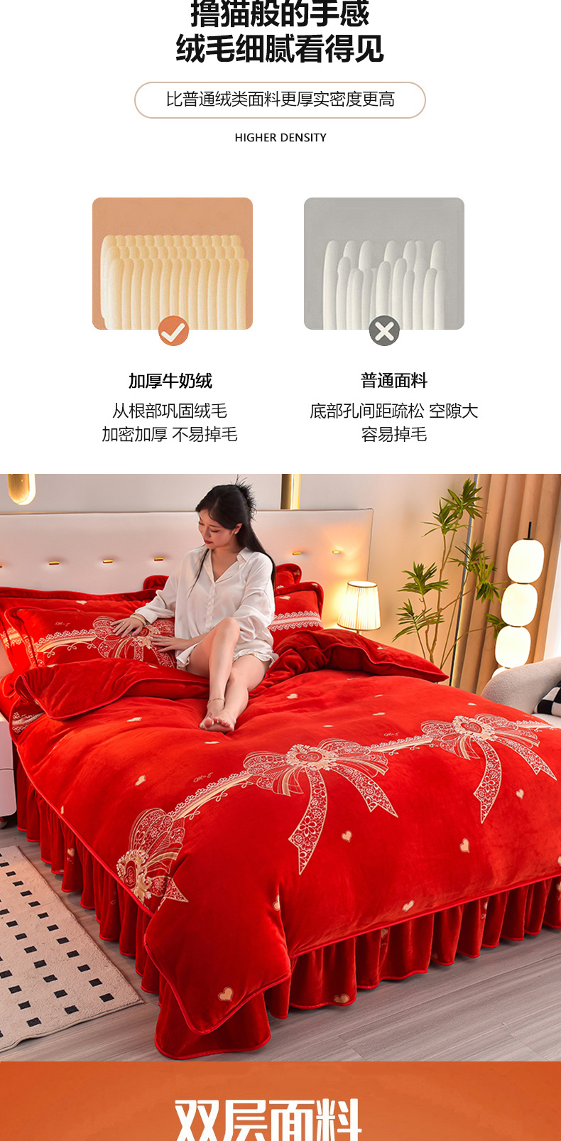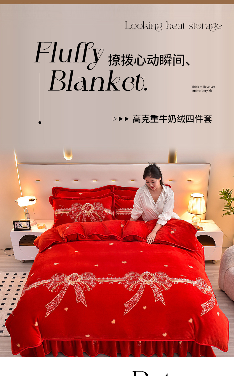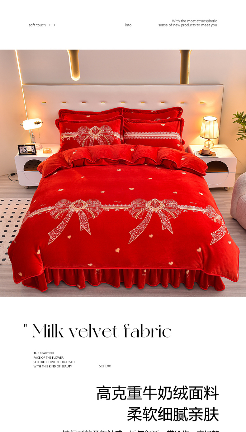 亿品2025直播爆款9.5斤牛奶绒四件套加厚保暖床裙四件套 喜结良缘