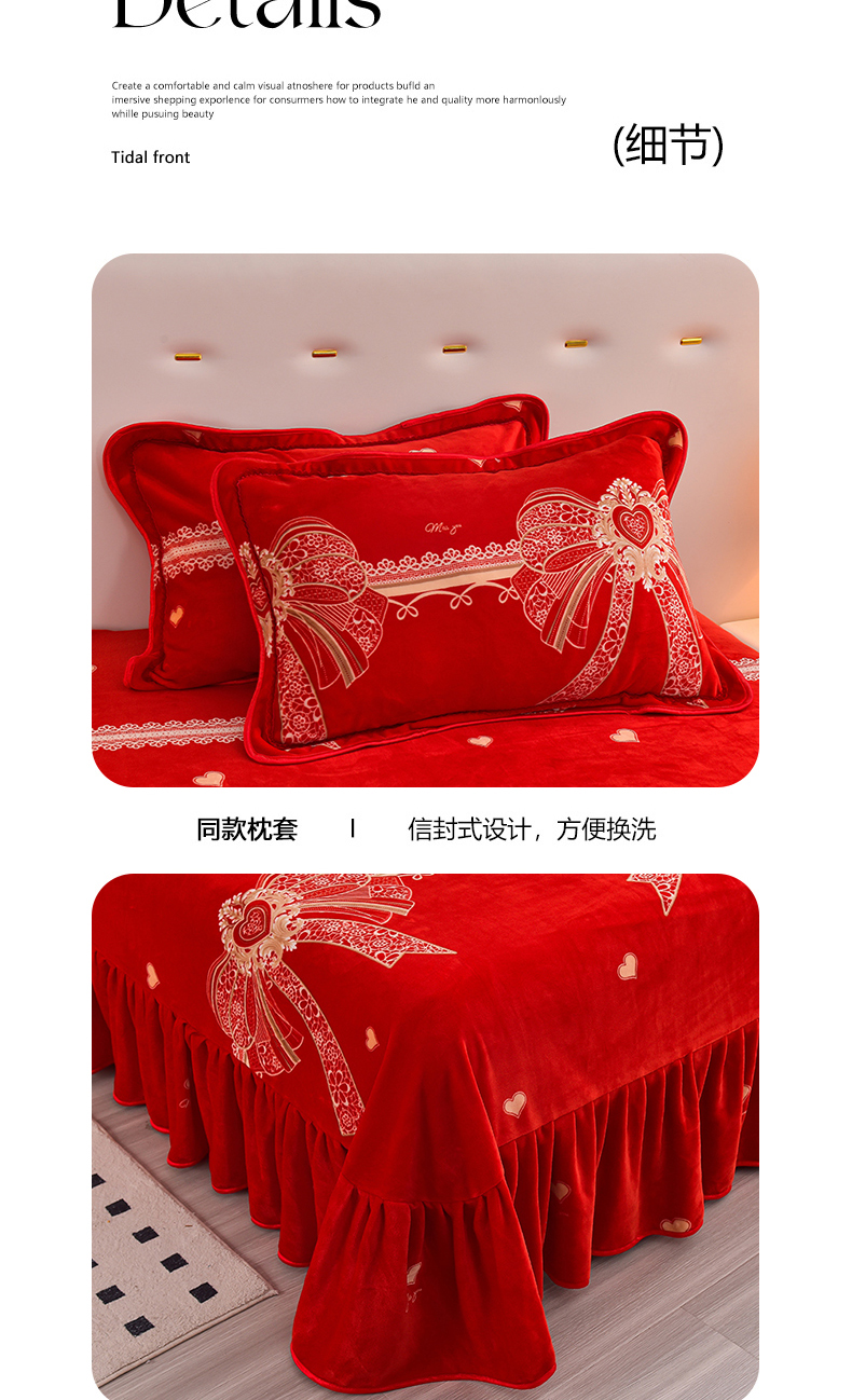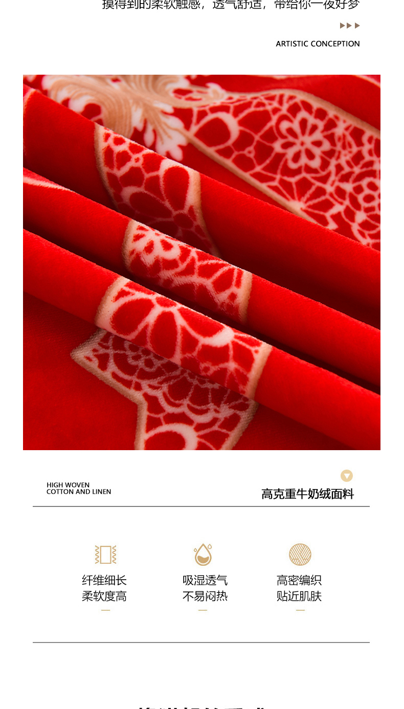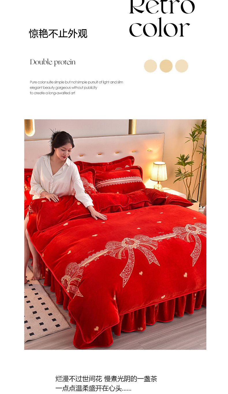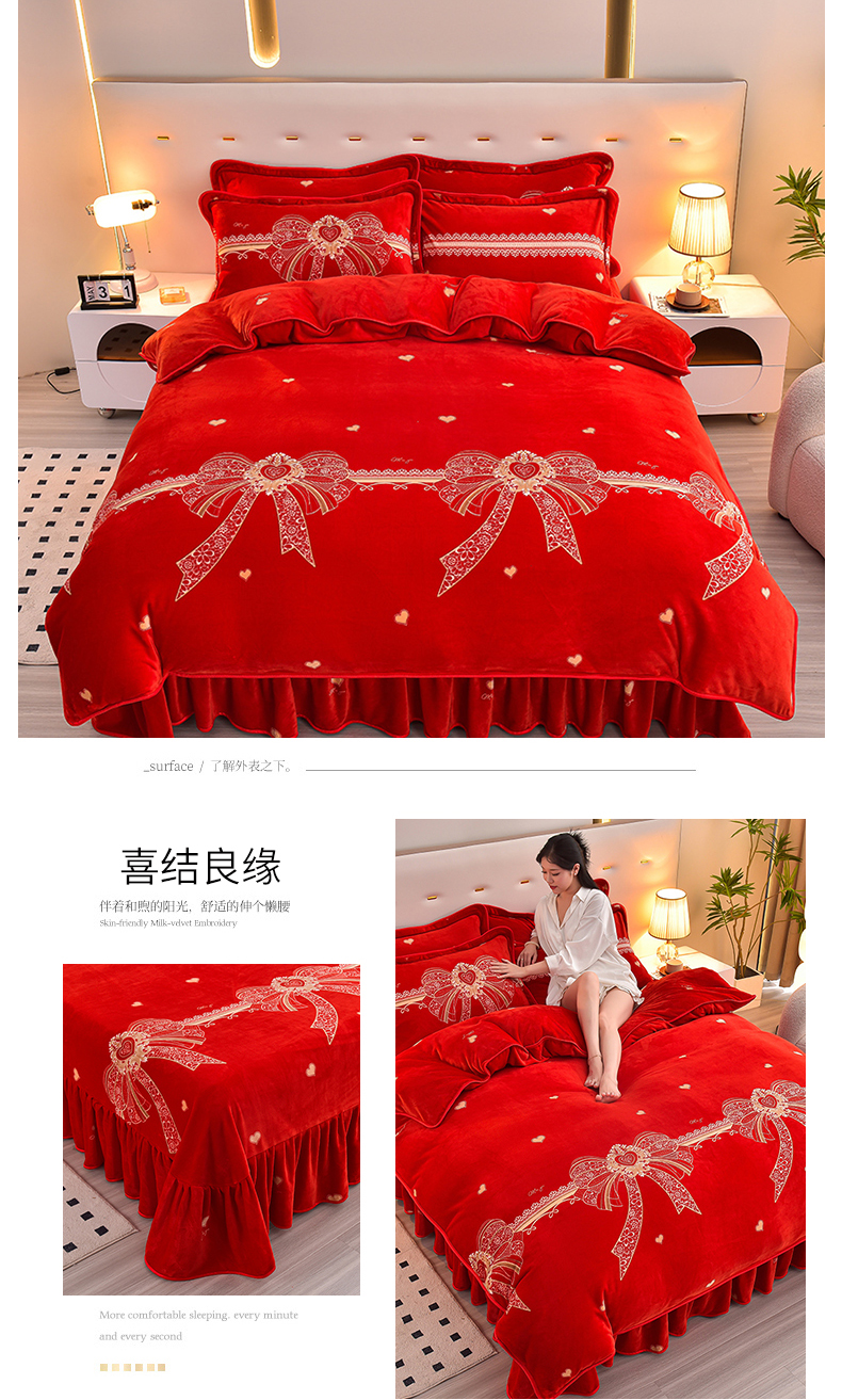 商品名称:亿品2025直播爆款9.5斤牛奶绒四件套加厚保暖床裙四件套 喜结良缘