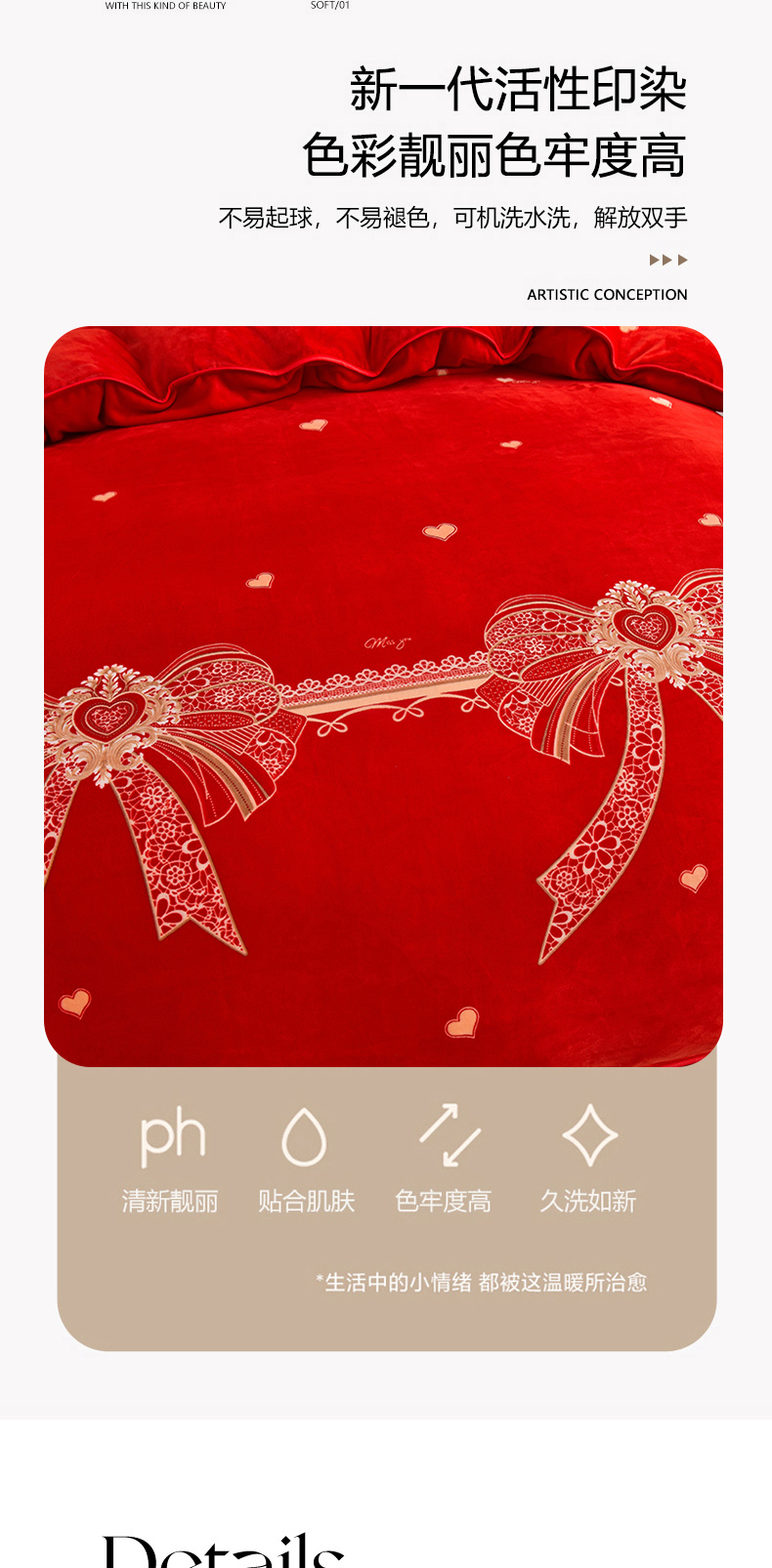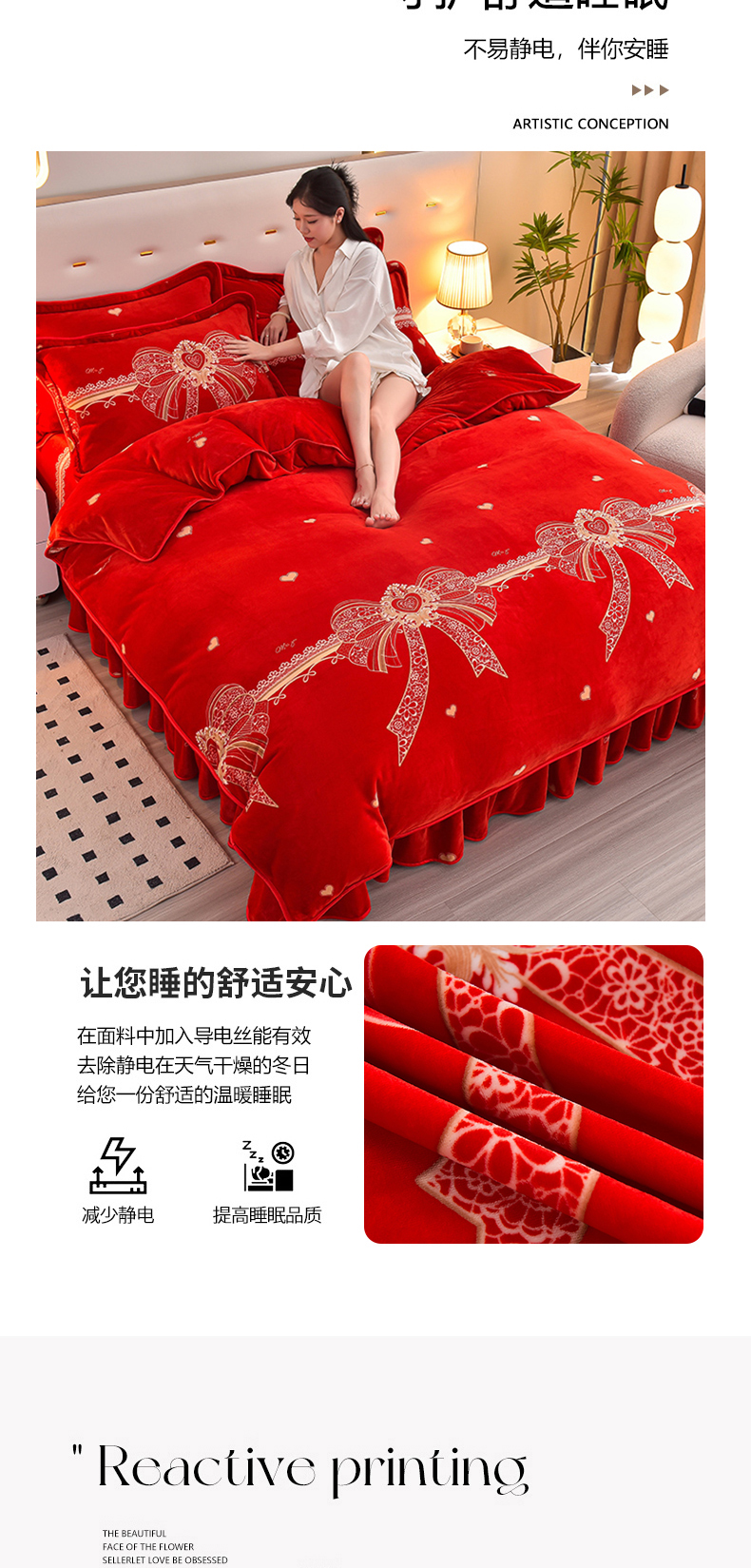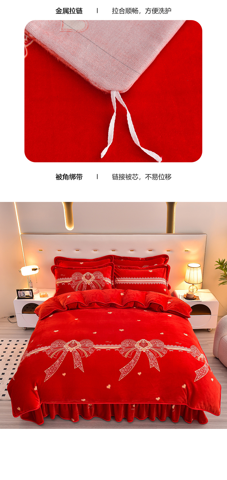商品名称:亿品2025直播爆款9.5斤牛奶绒四件套加厚保暖床裙四件套 喜结良缘