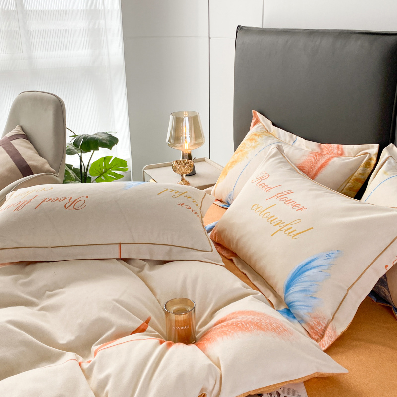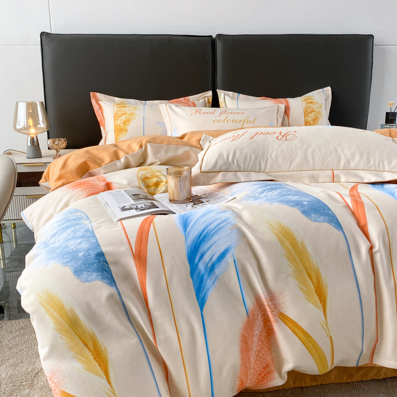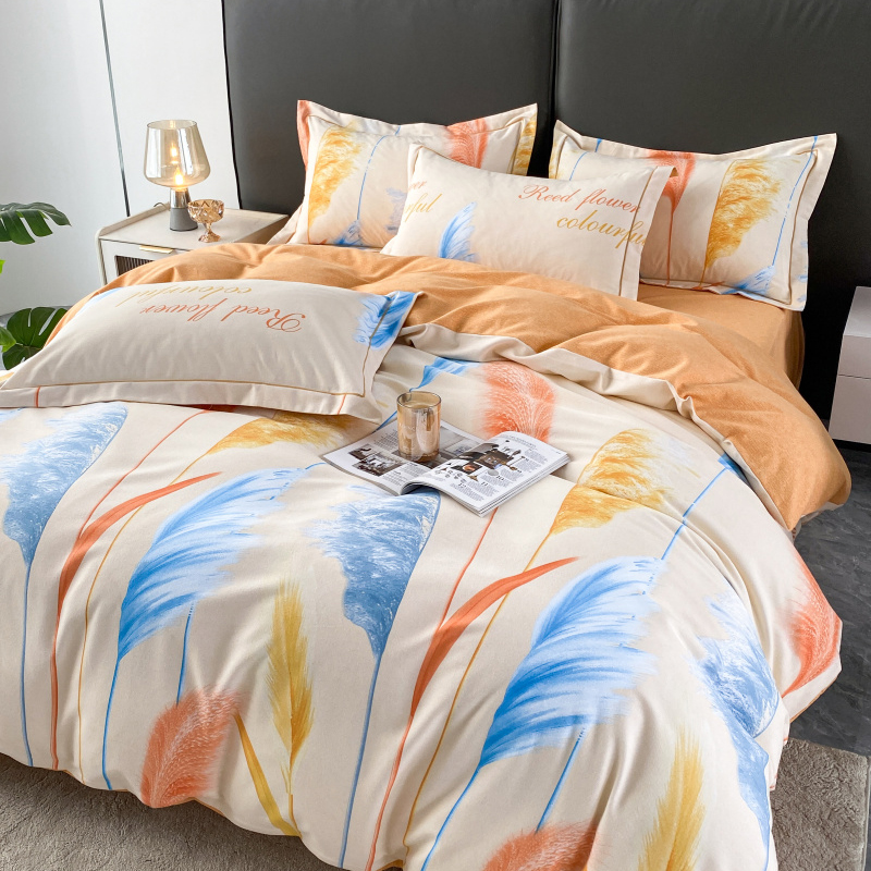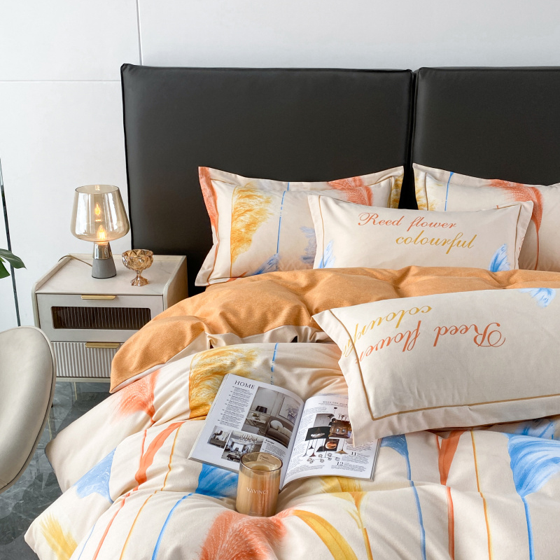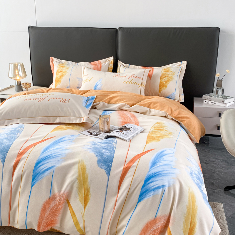 商品名称:2024新款全棉印花磨毛系列四件套 幸运草 桔
