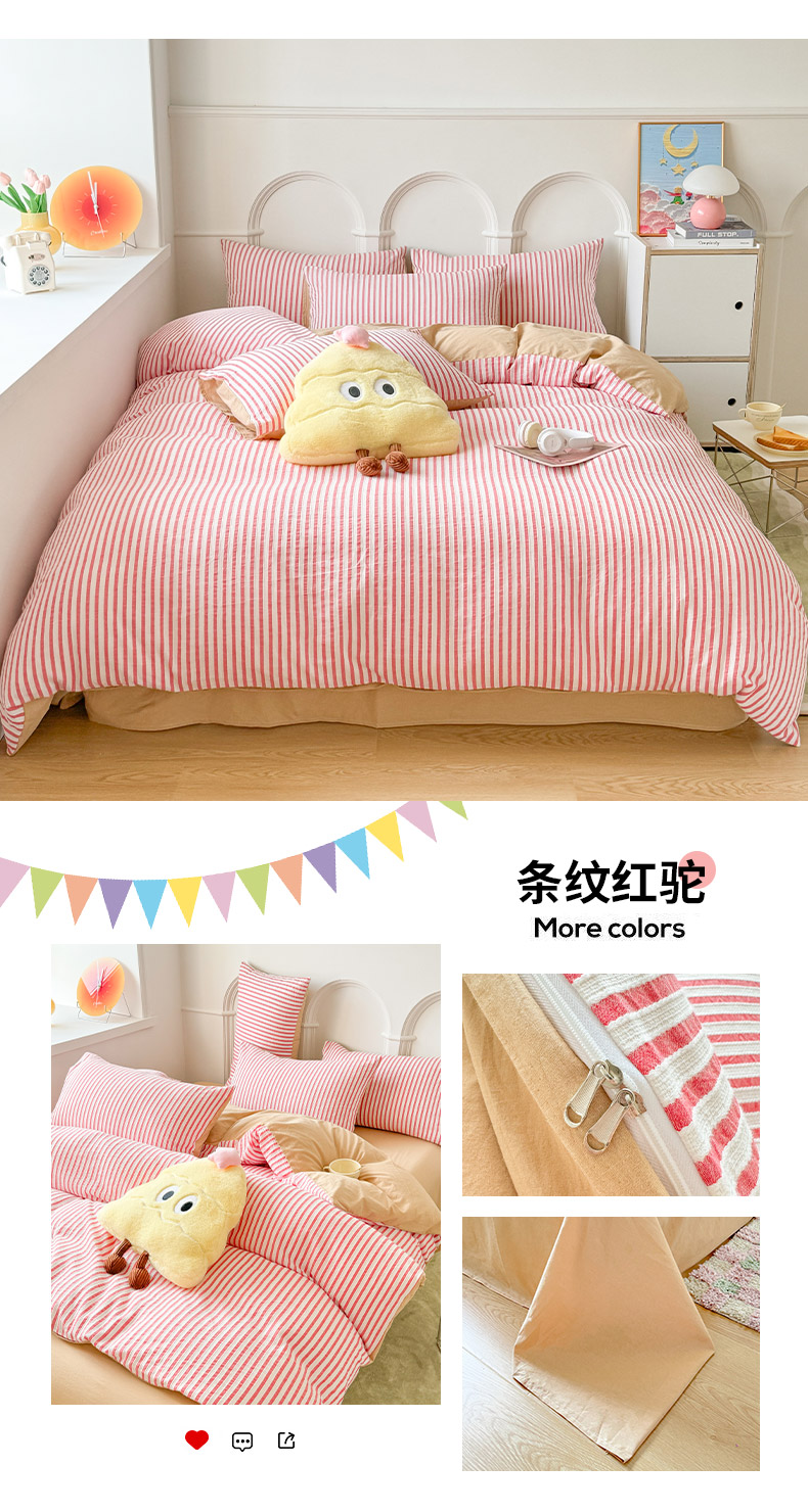 千朵 2024新款色织提花水洗棉四件套 粉蓝