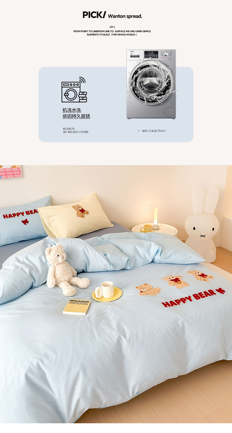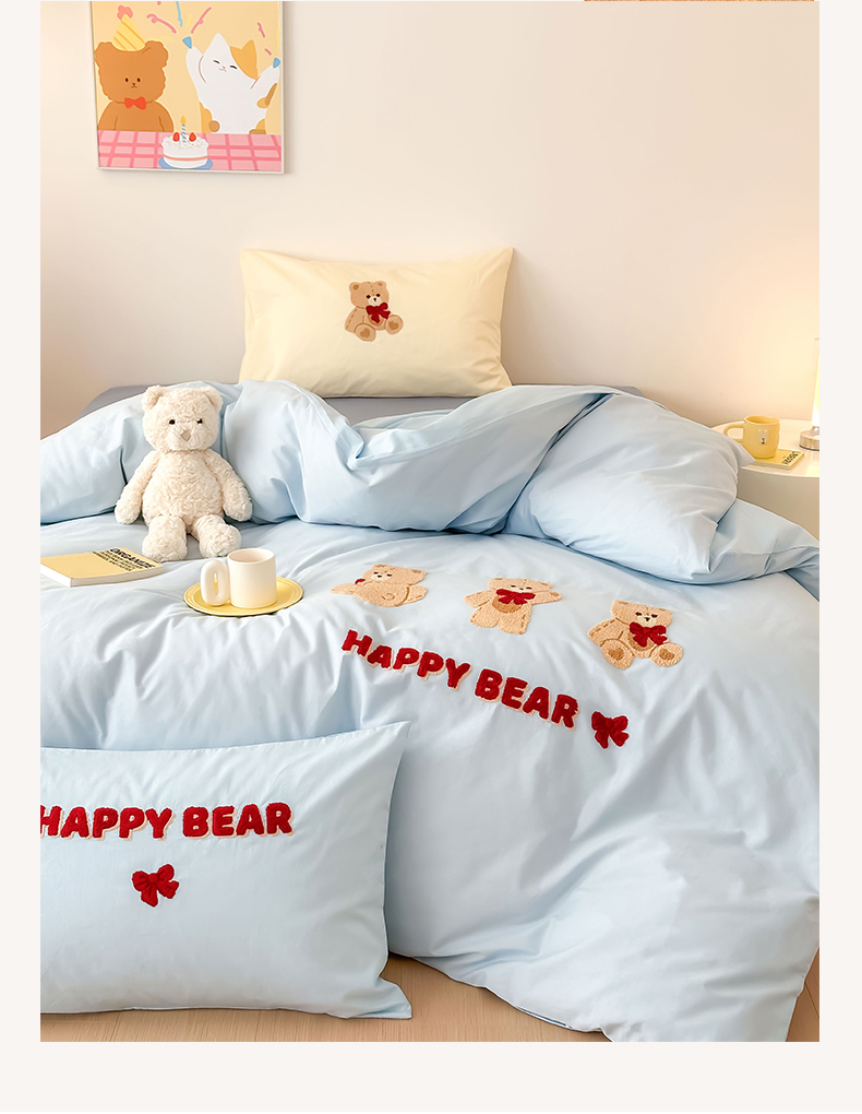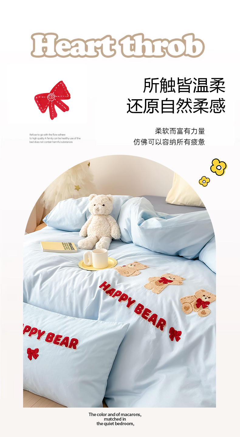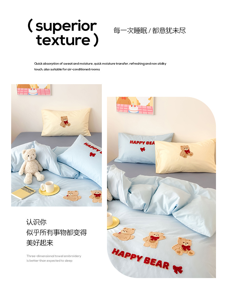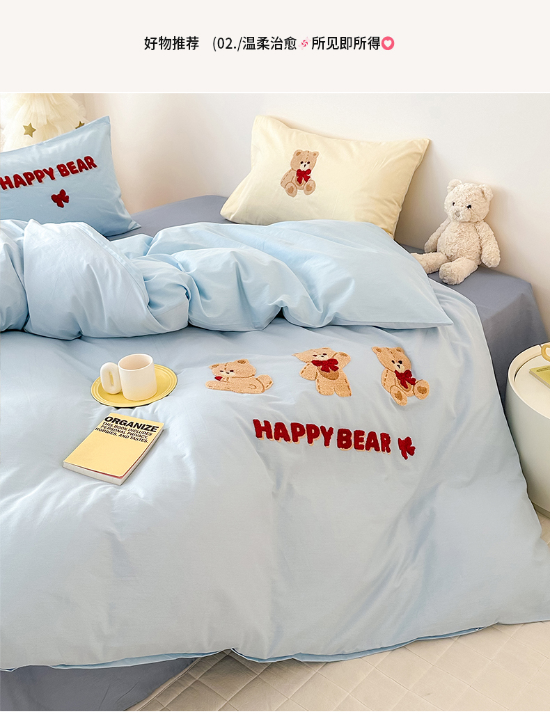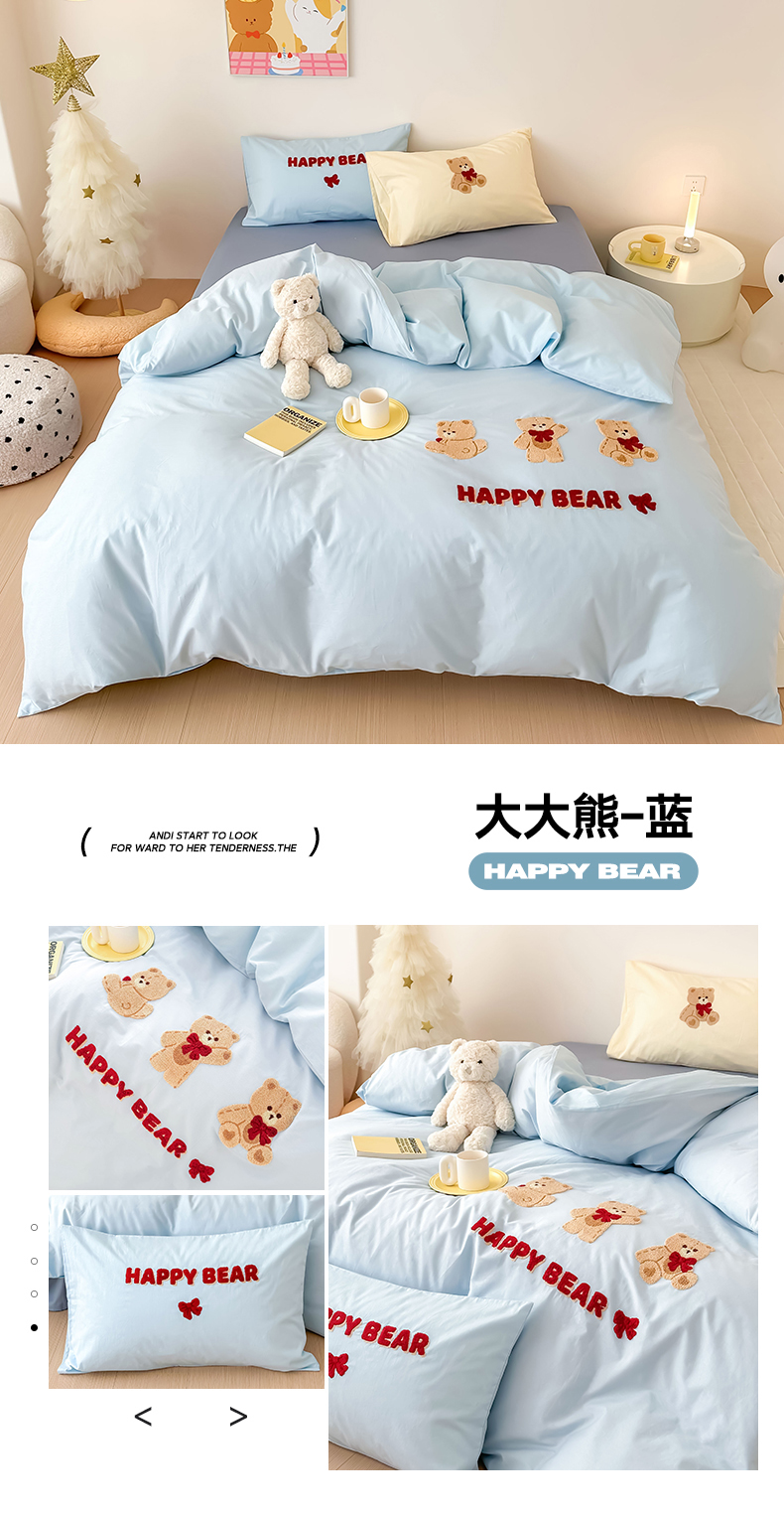 当前位置: 91家纺网 > 商品网购 > 床品套件 > 四件套 > 全棉普通四件套 > 我心家纺 2024新款全棉毛巾绣四件套-小熊系列 大大熊-蓝