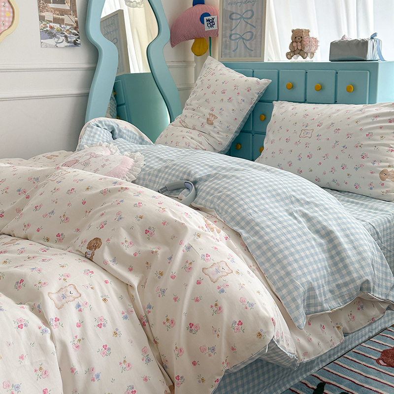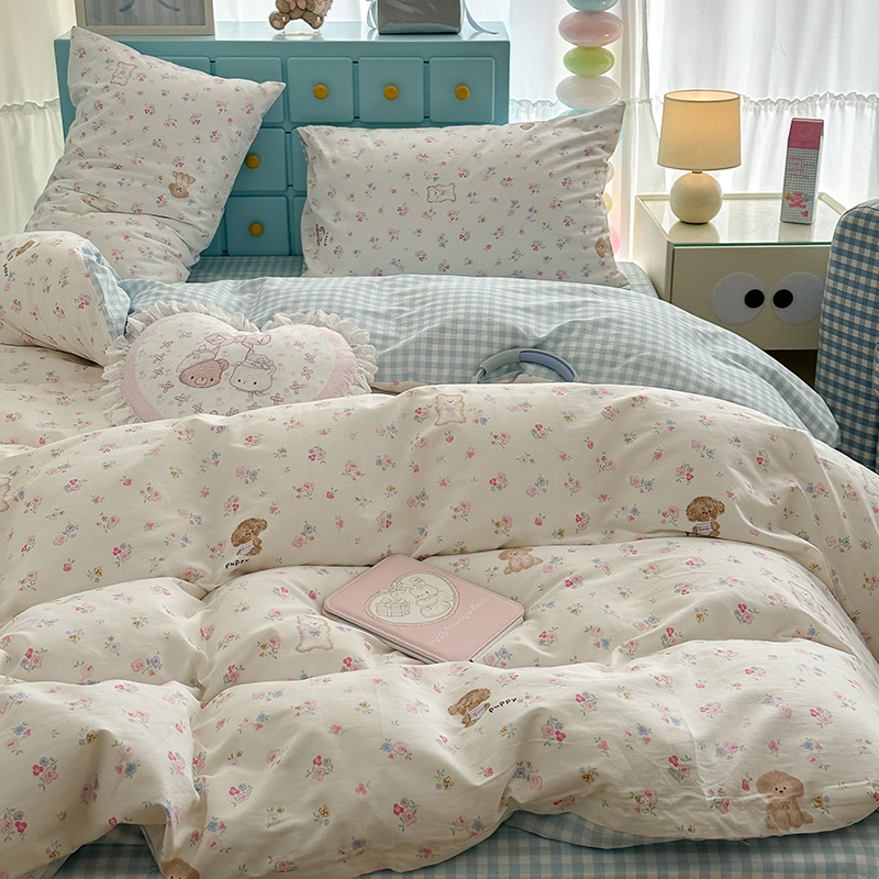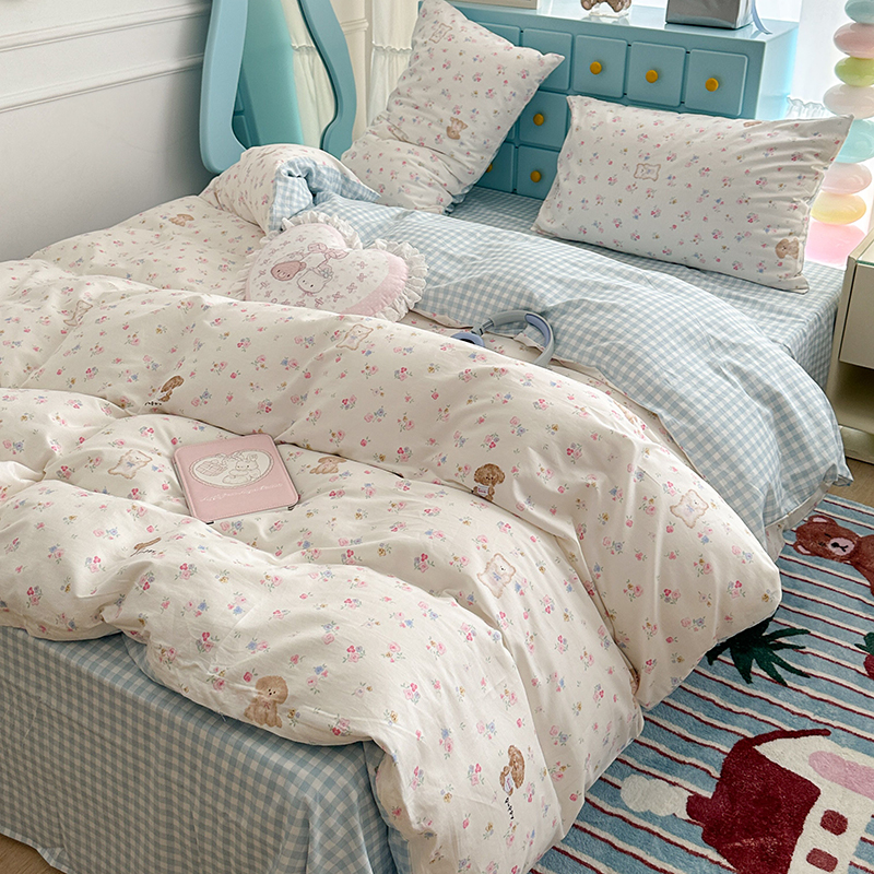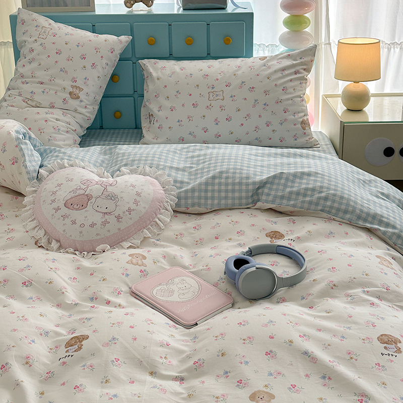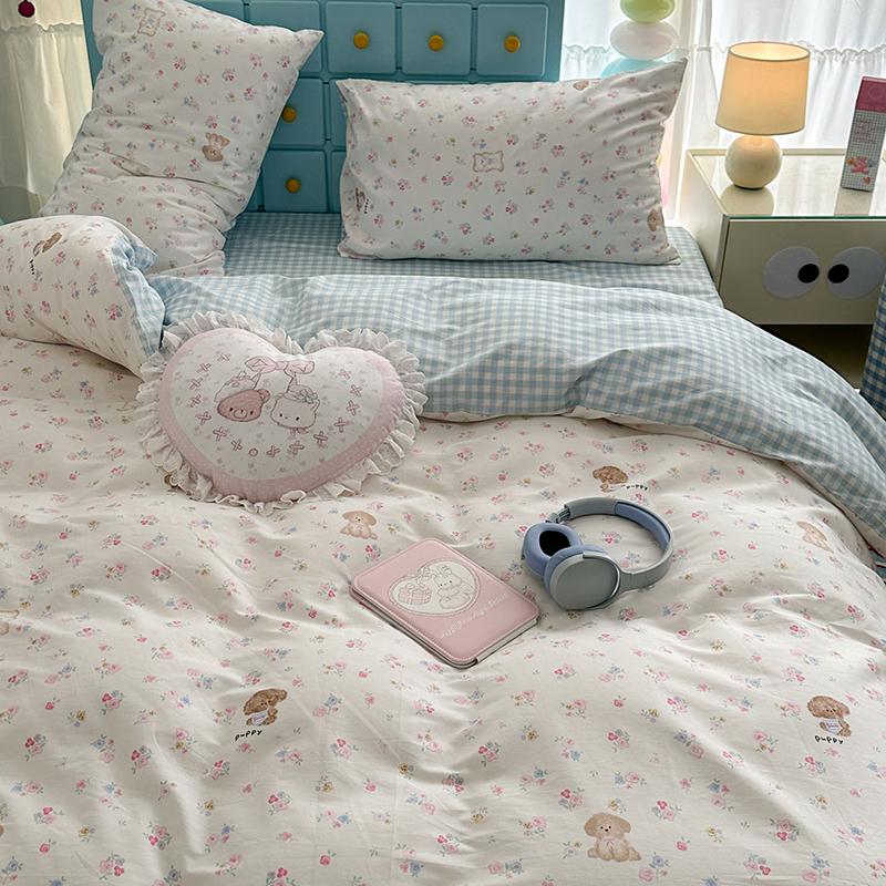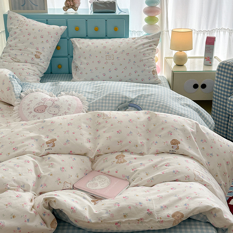 昔可家纺 2024新款小卡通13372亲肤四件套 小碎花狗狗