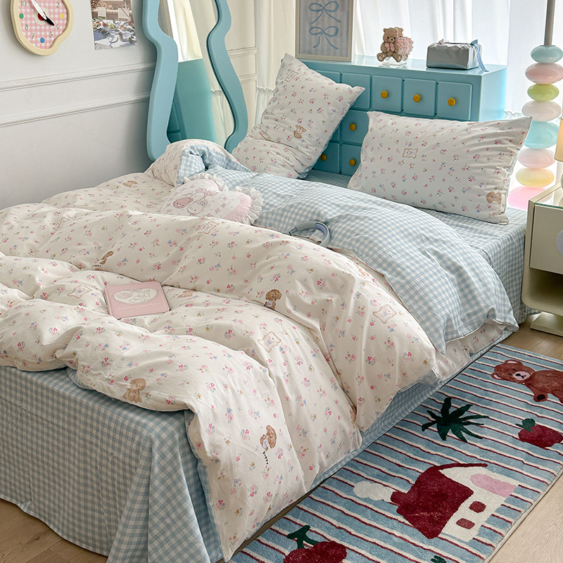 (总)昔可家纺 2024新款印花牛奶绒四件套系列-洛丽塔风,萝莉小兔,小熊烘焙屋,小熊玩偶屋