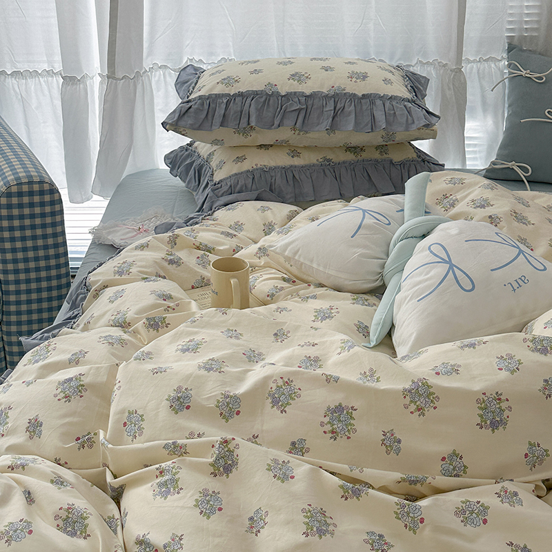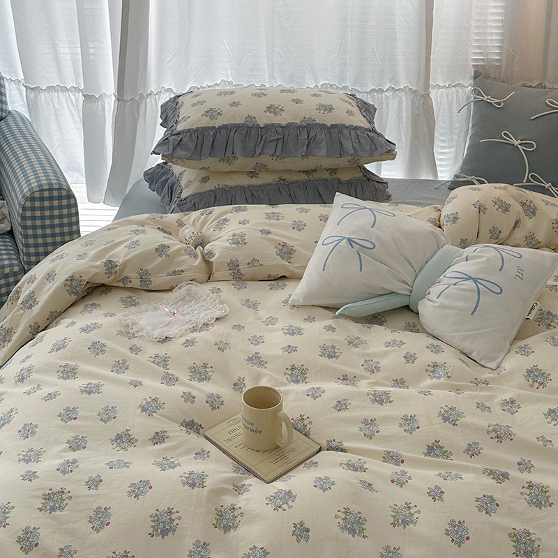 (总)昔可家纺 2023新款全棉小花系列四件套,柏林少女,小小的樱桃,紫色葡萄