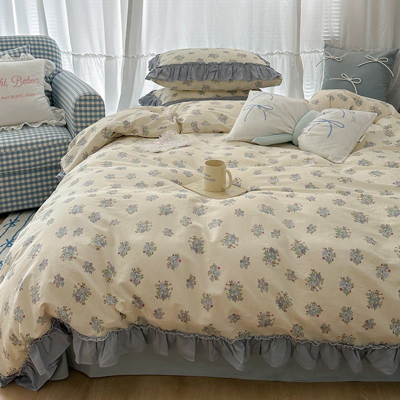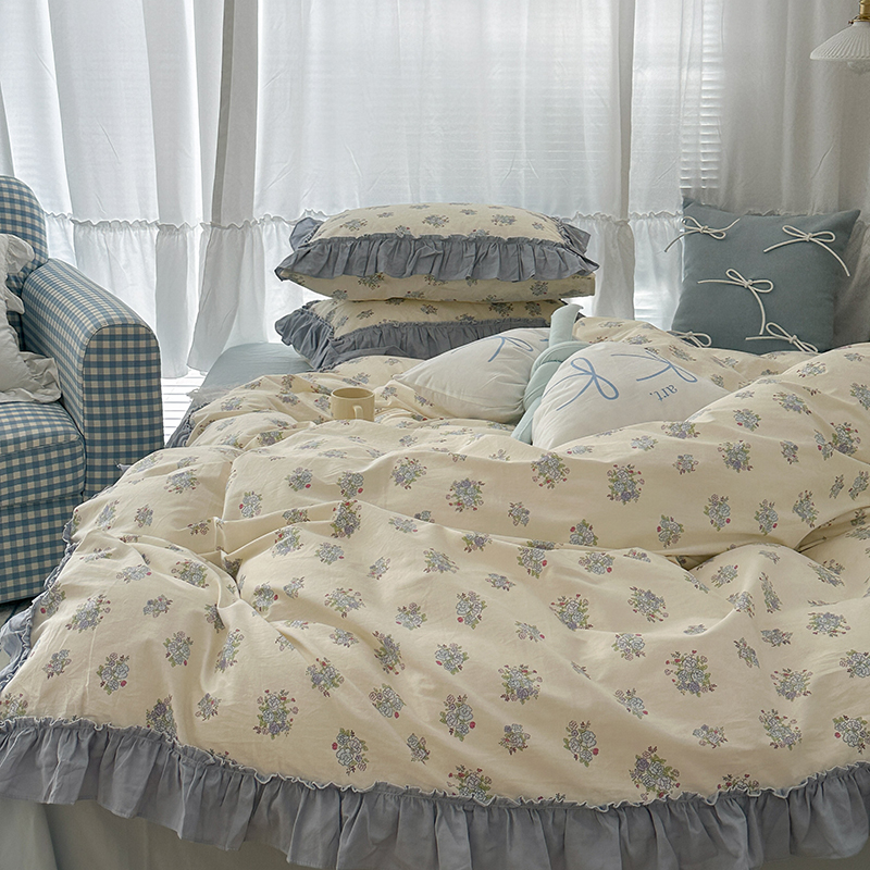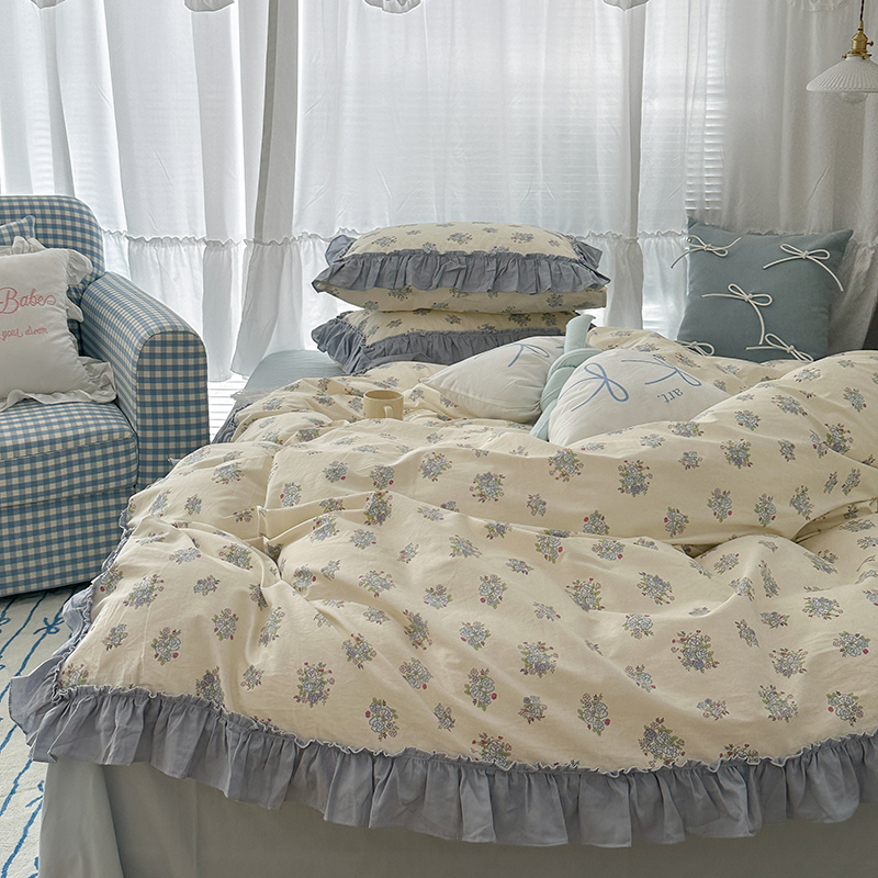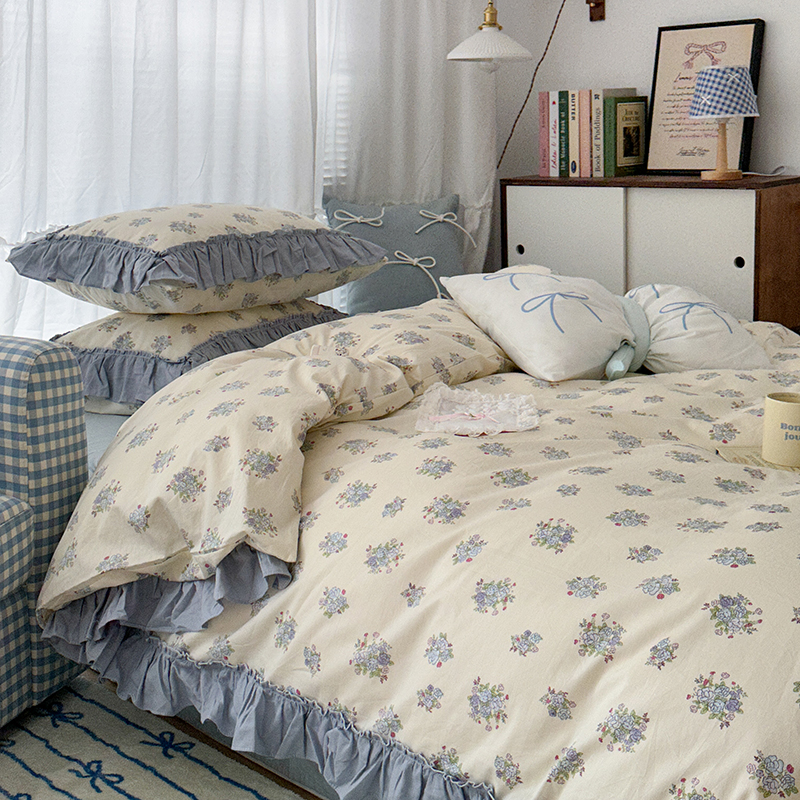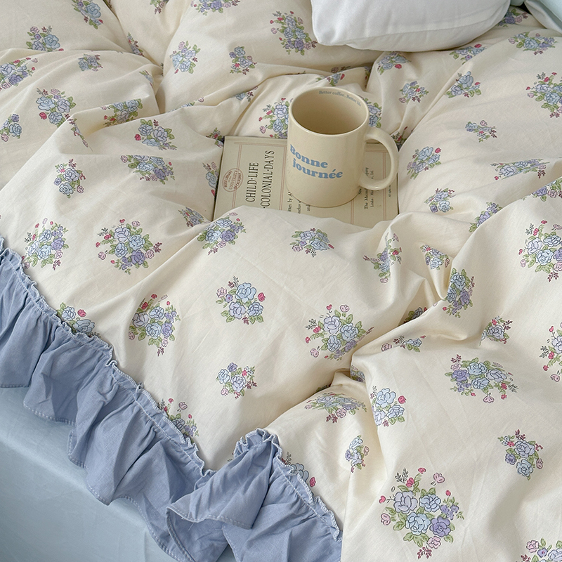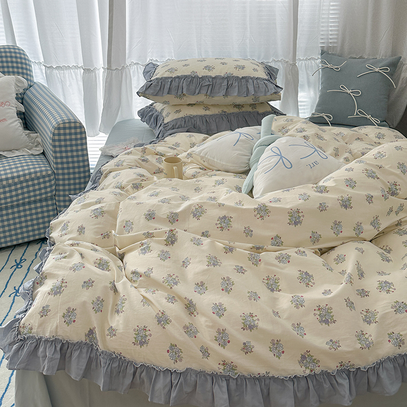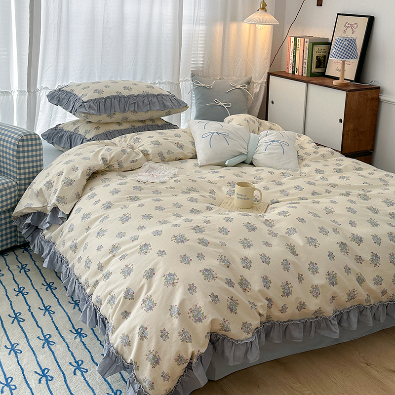 商品名称:昔可家纺 2024新款双层纱贴边全棉四件套 鸢尾蓝黛