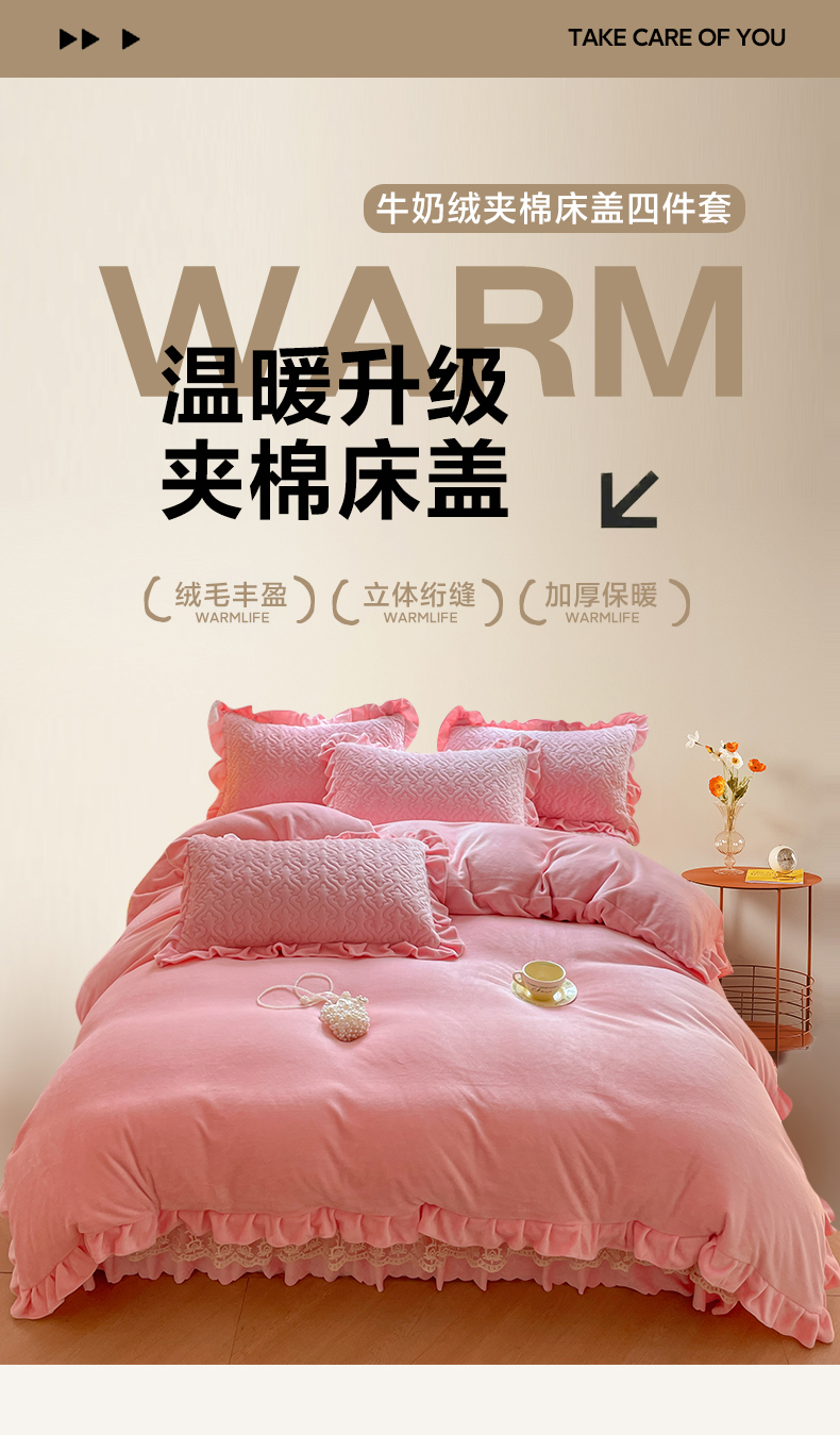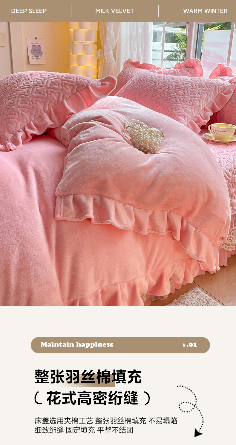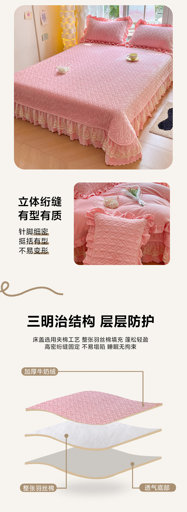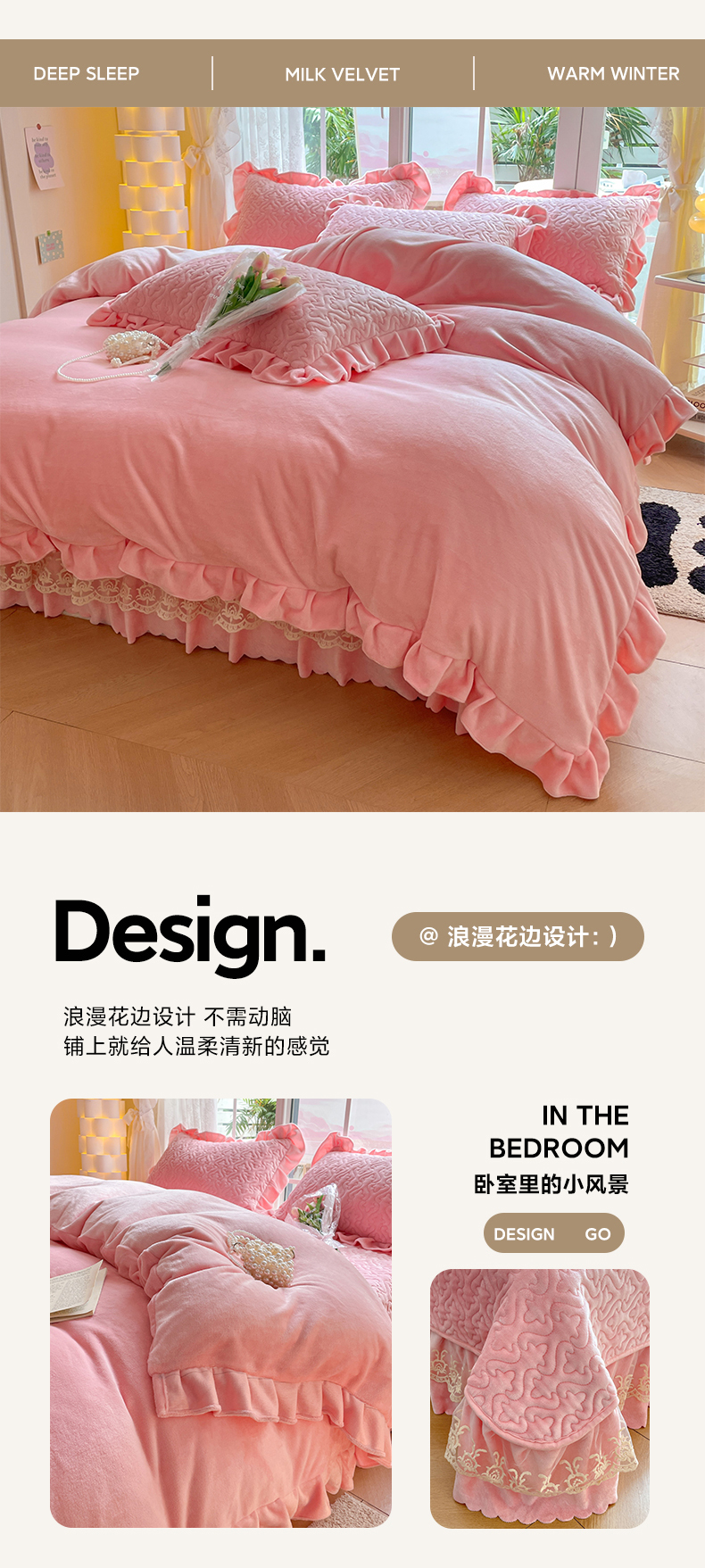 (总)畅畅家纺 2024新款冬季韩版花边蕾丝牛奶绒床盖四件套