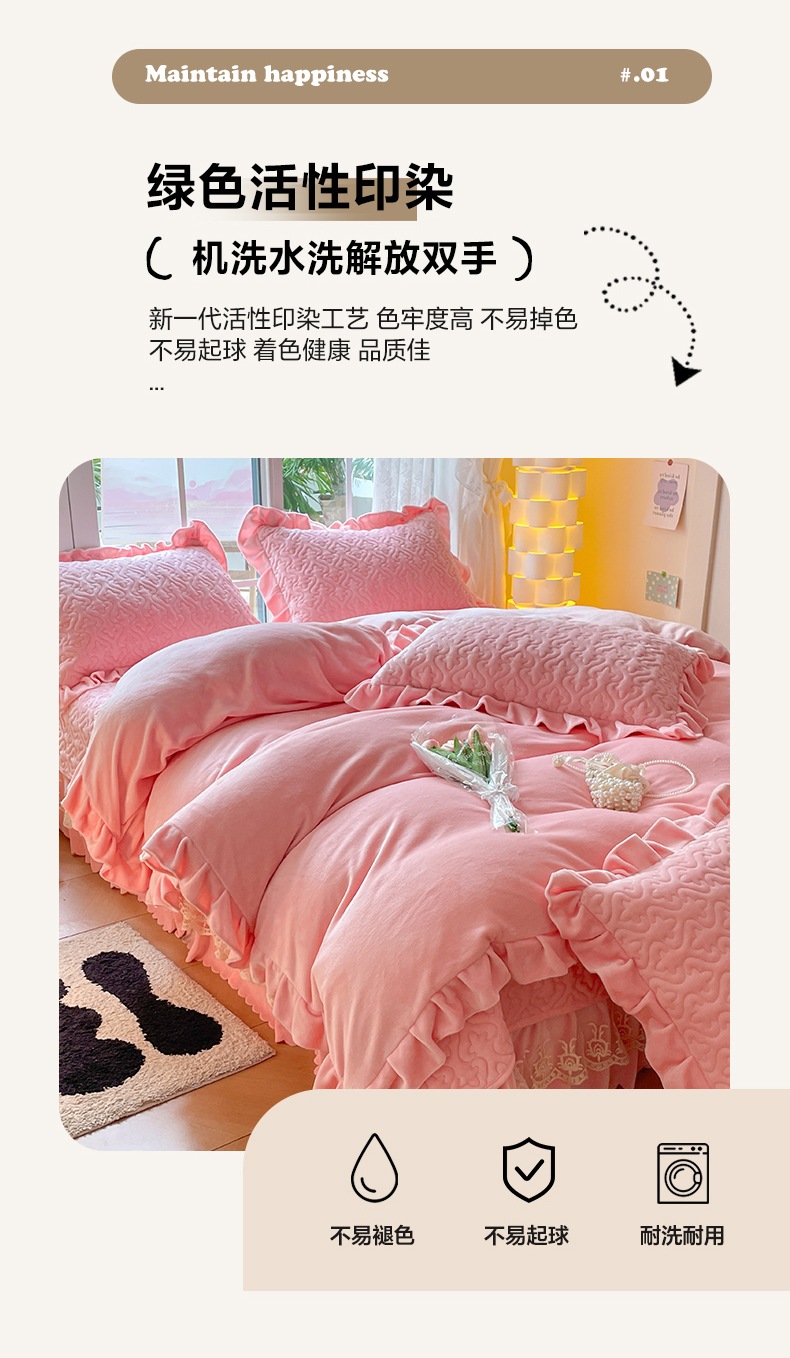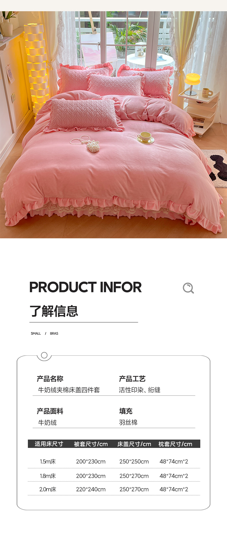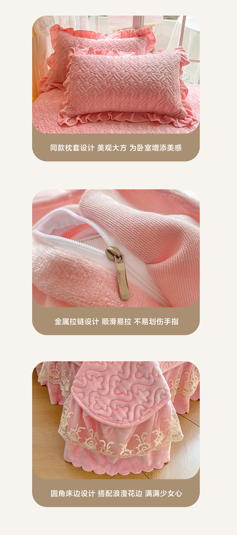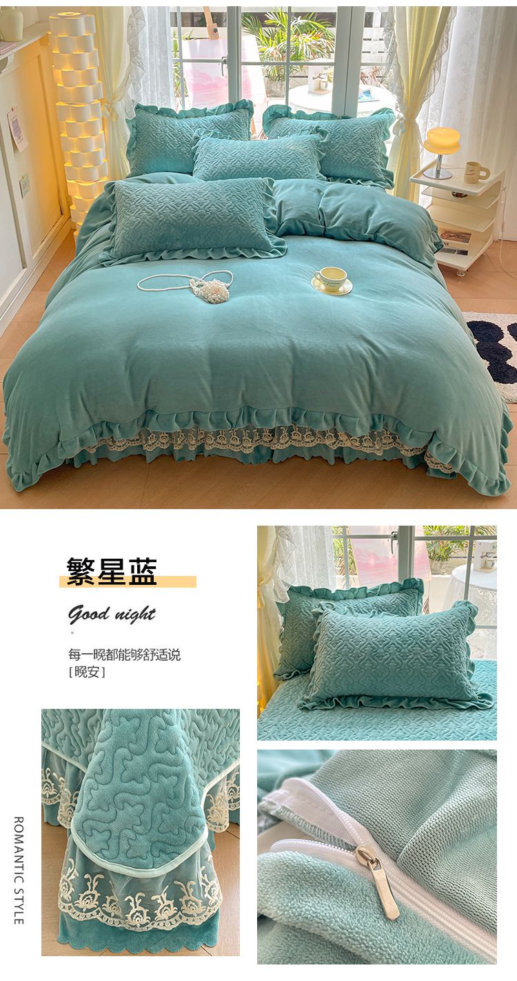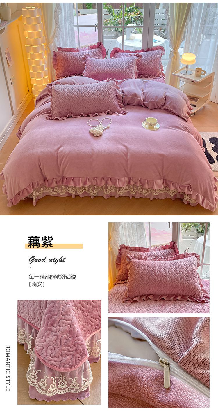 商品名称:(总)畅畅家纺 2024新款冬季韩版花边蕾丝牛奶绒床盖四件套