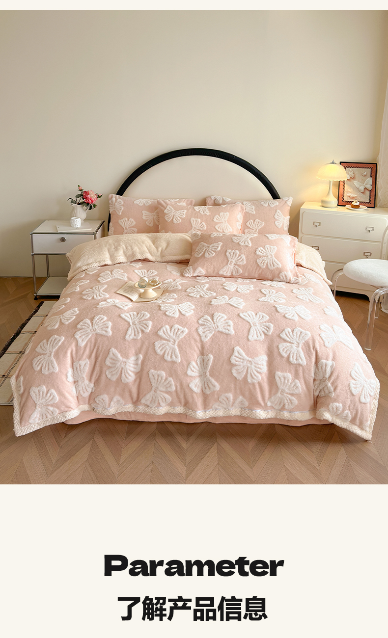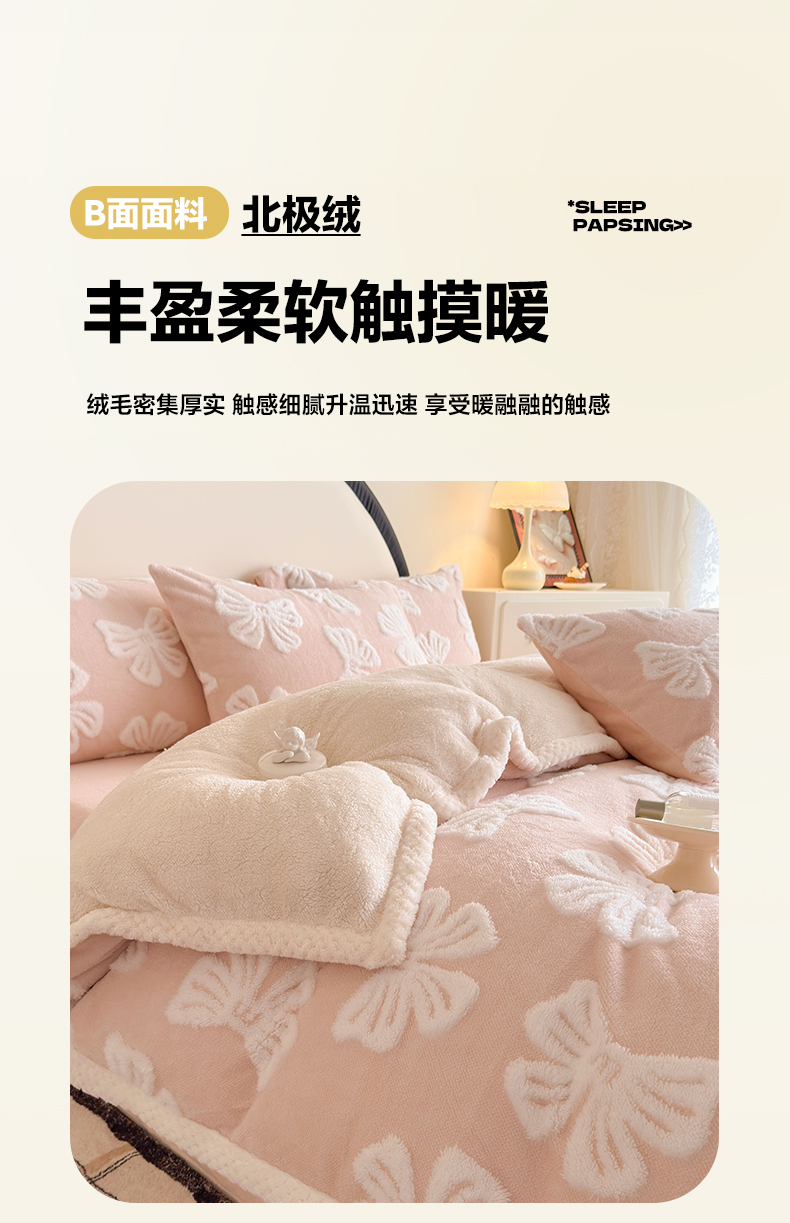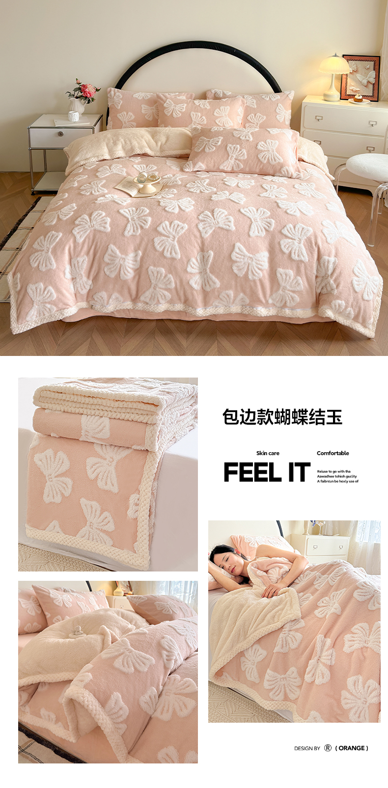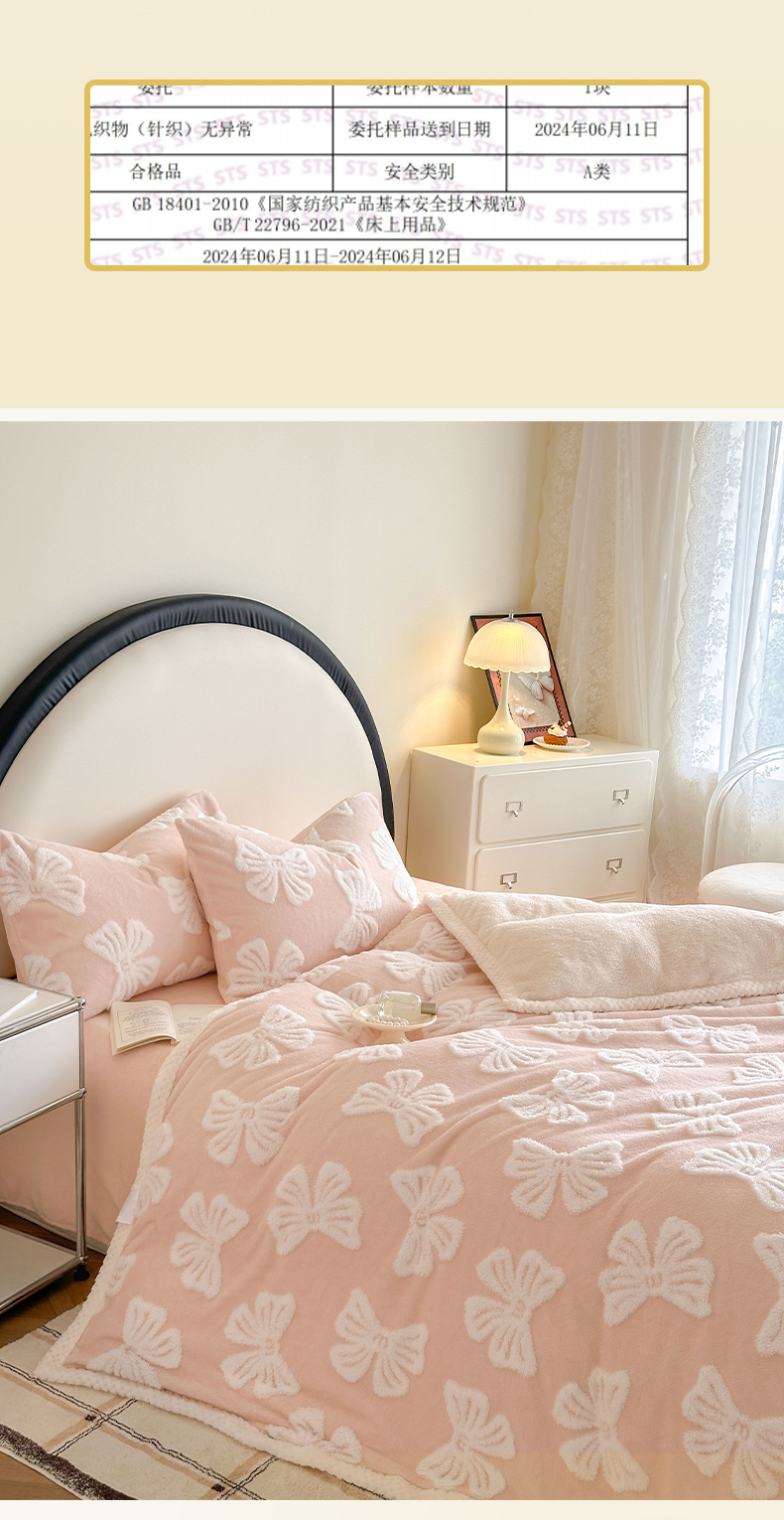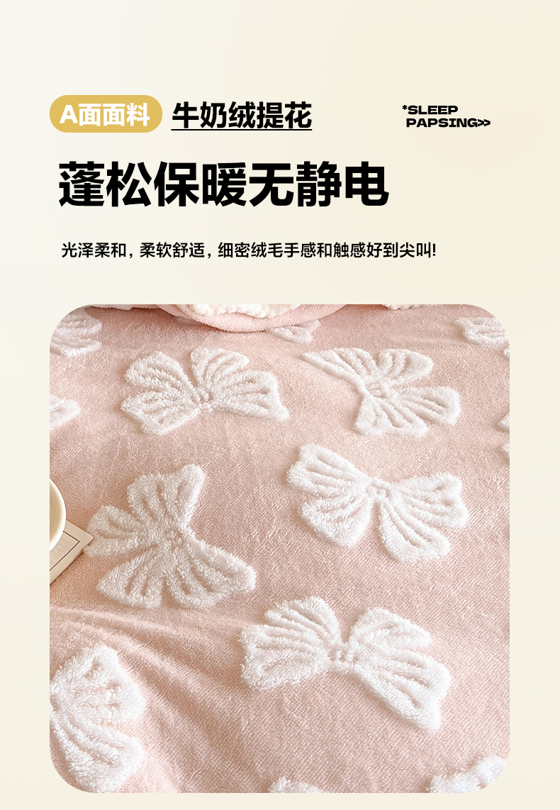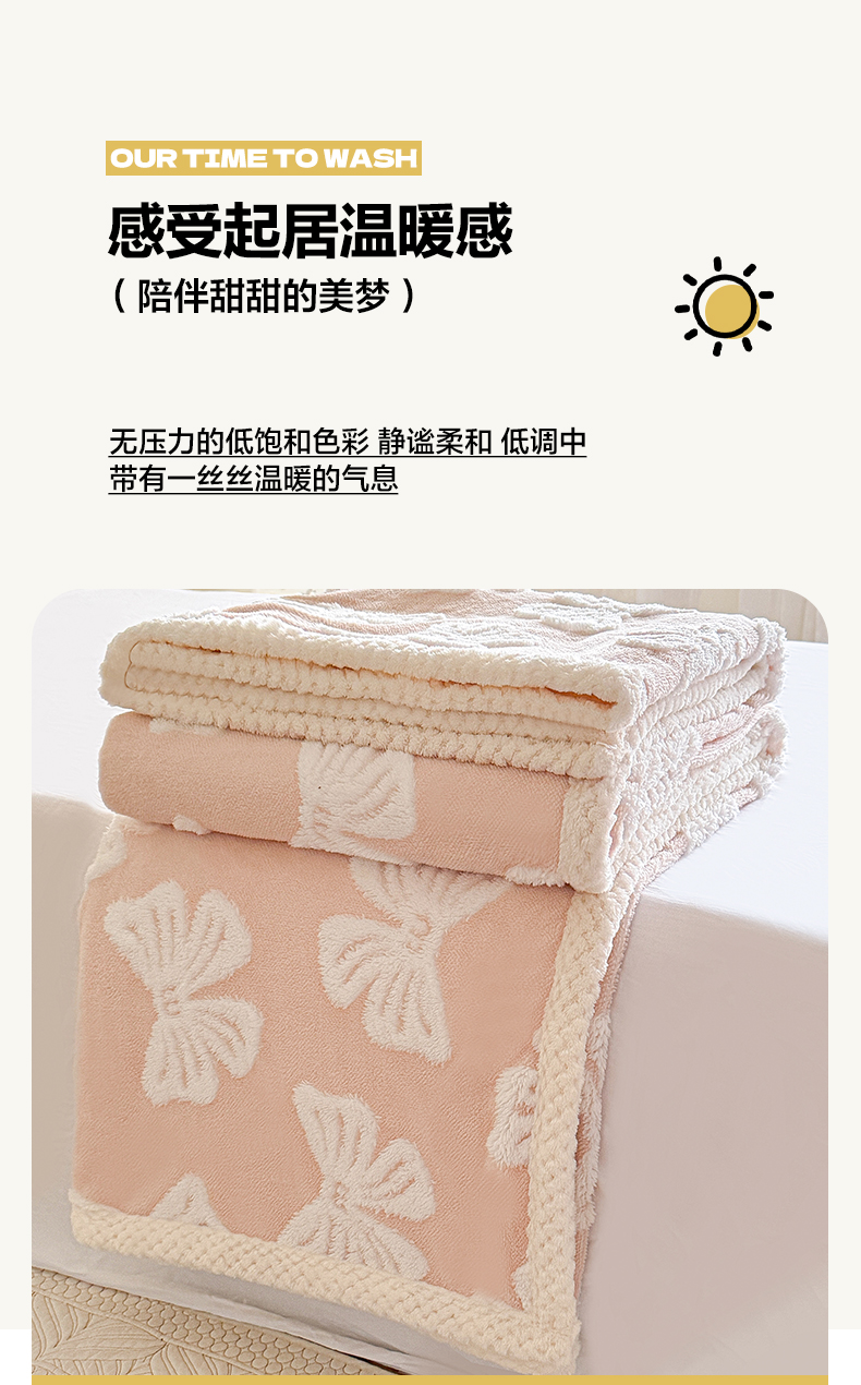 当前位置: 91家纺网 > 商品网购 > 毛毯休闲毯绒毯 > 毛毯 > 莱登卡奴 2024新款牛奶绒阳离子提花北极绒包边款多功能被套毯系列 包边款蝴蝶结玉