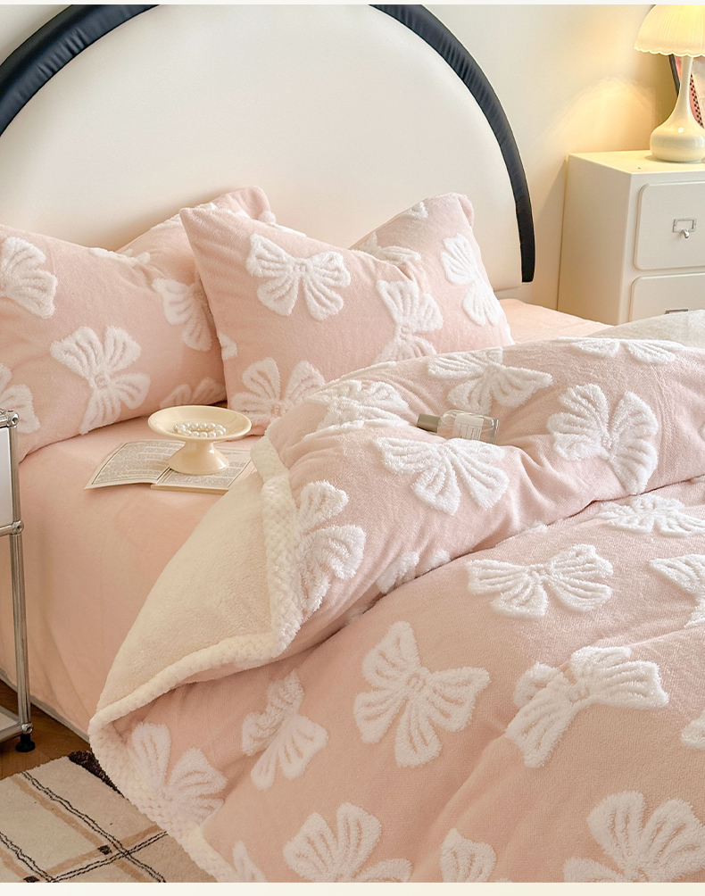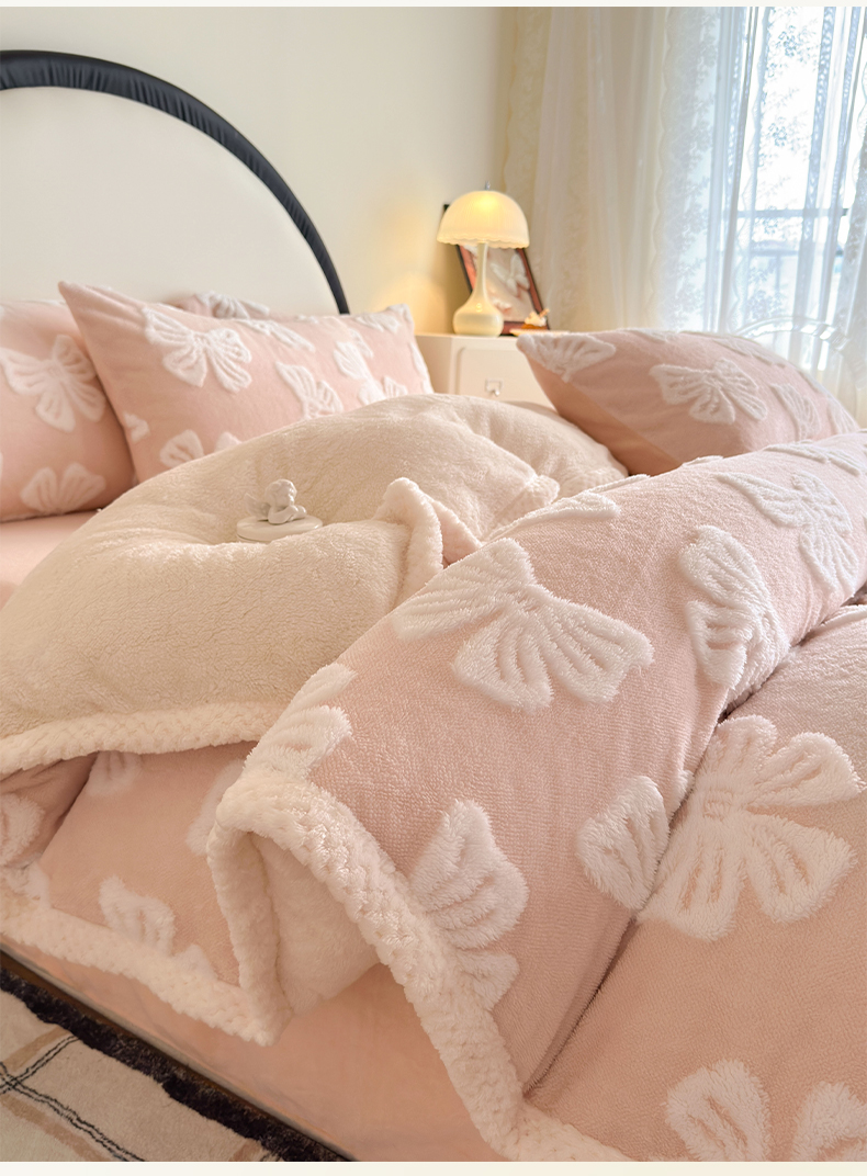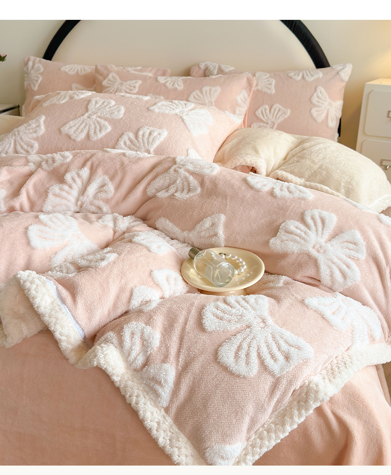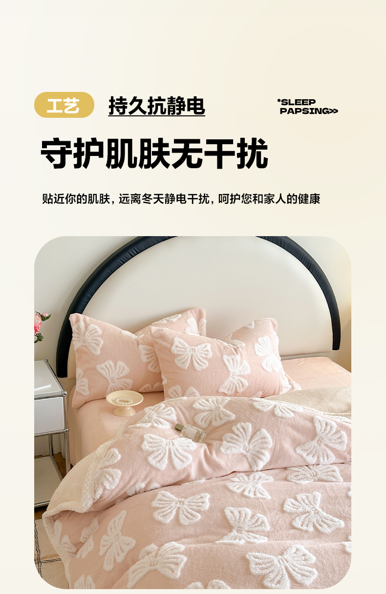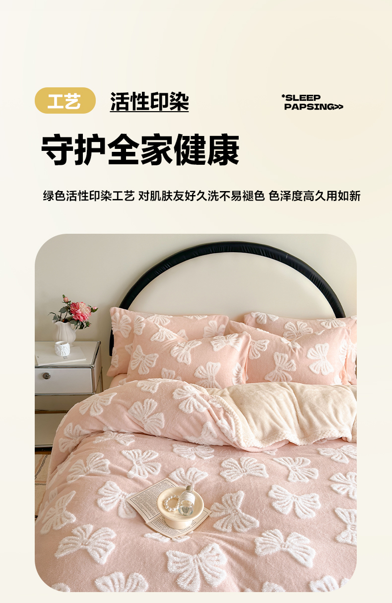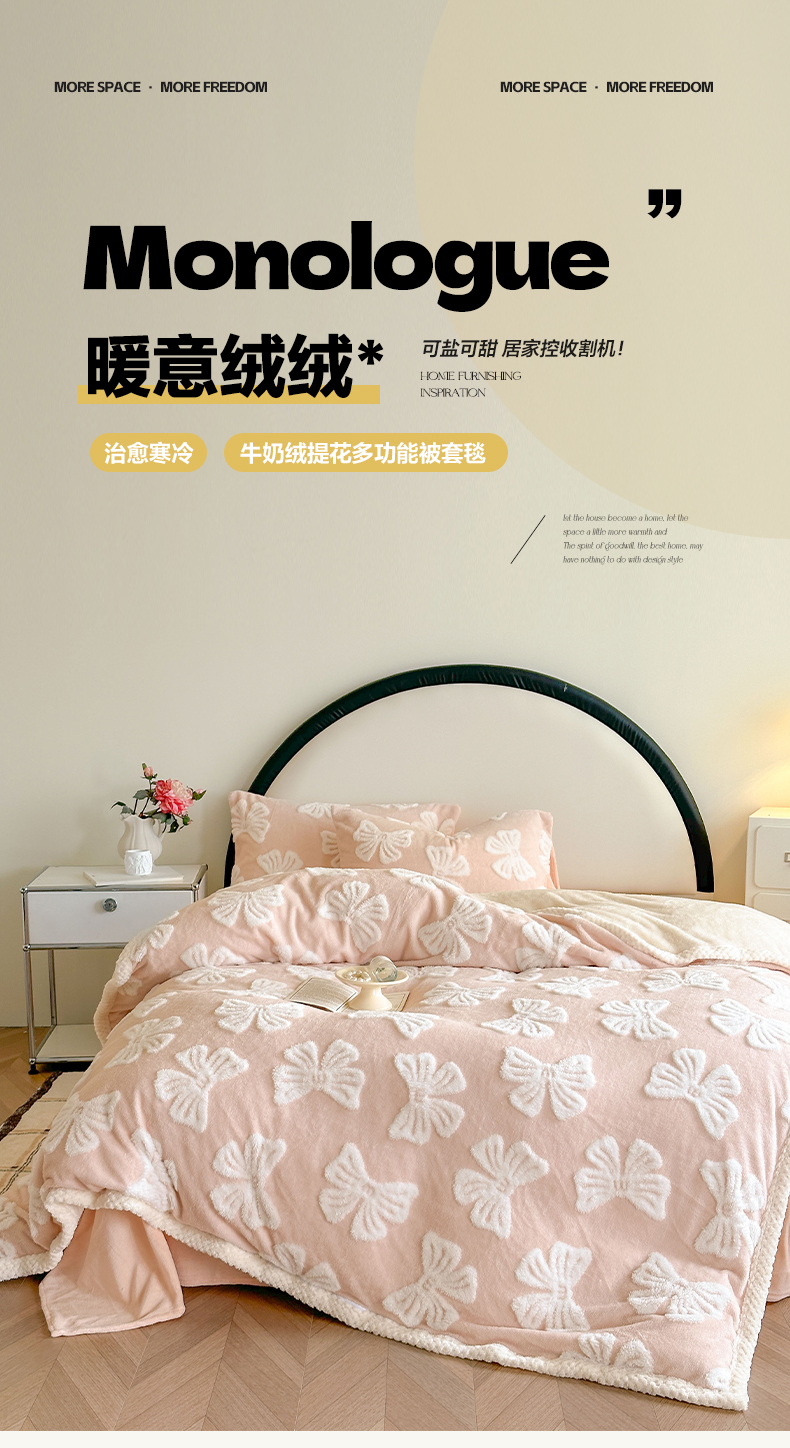 当前位置: 91家纺网 > 商品网购 > 毛毯休闲毯绒毯 > 毛毯 > 莱登卡奴 2024新款牛奶绒阳离子提花北极绒包边款多功能被套毯系列 包边款蝴蝶结玉