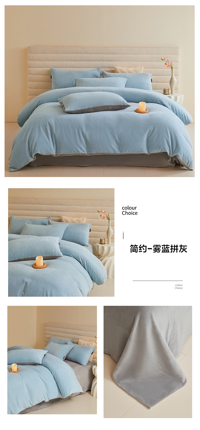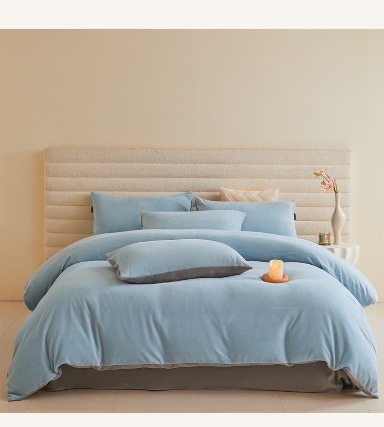 当前位置: 91家纺网 > 商品网购 > 床品套件 > 四件套 > 牛奶绒四件套 > 莱登卡奴 2024新款牛奶绒高克重纯色拼色四件套-简约系列 简约-雾蓝拼灰