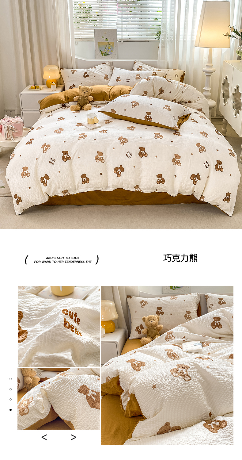 当前位置: 91家纺网 > 商品网购 > 床品套件 > 四件套 > 水洗棉四件套 > 悦织湾家纺 2025新款轻奢北欧风小清新印花水洗棉四件套 巧克力熊