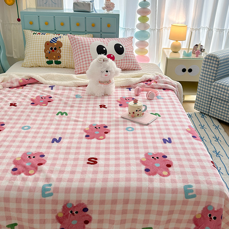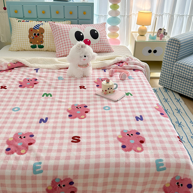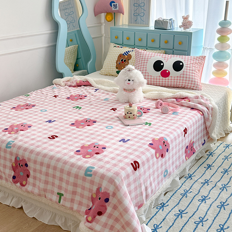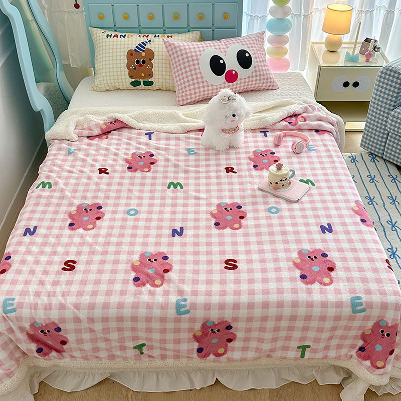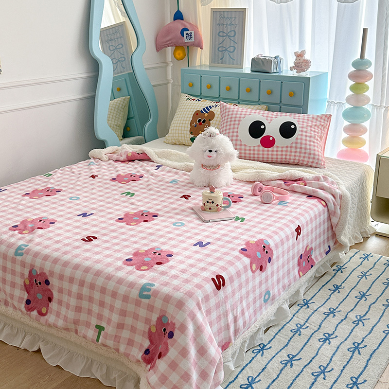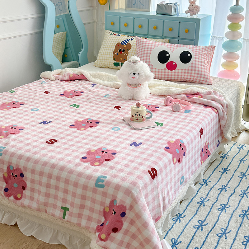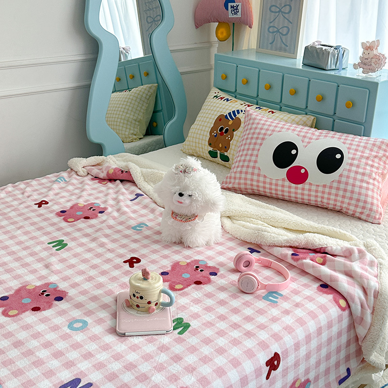 昔可家纺 2024新款羊羔绒牛奶绒毛毯系列(三)-卡通系列 点点粉格猫